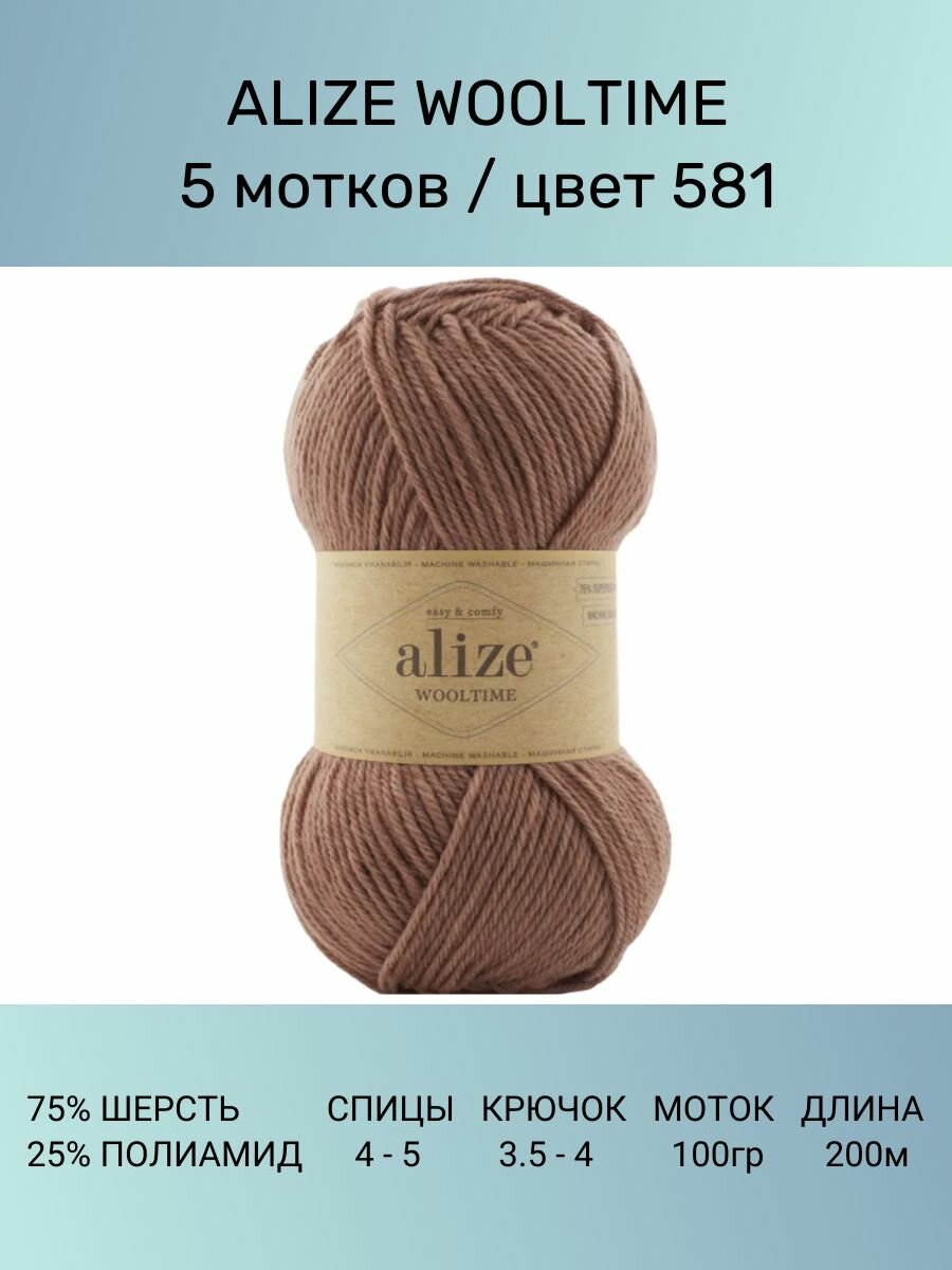 СохранитьПряжа Alize Wooltime Вултайм: 581, 5 шт 200 м 100 г, 75% шерсть, 25% полиамид интересное: