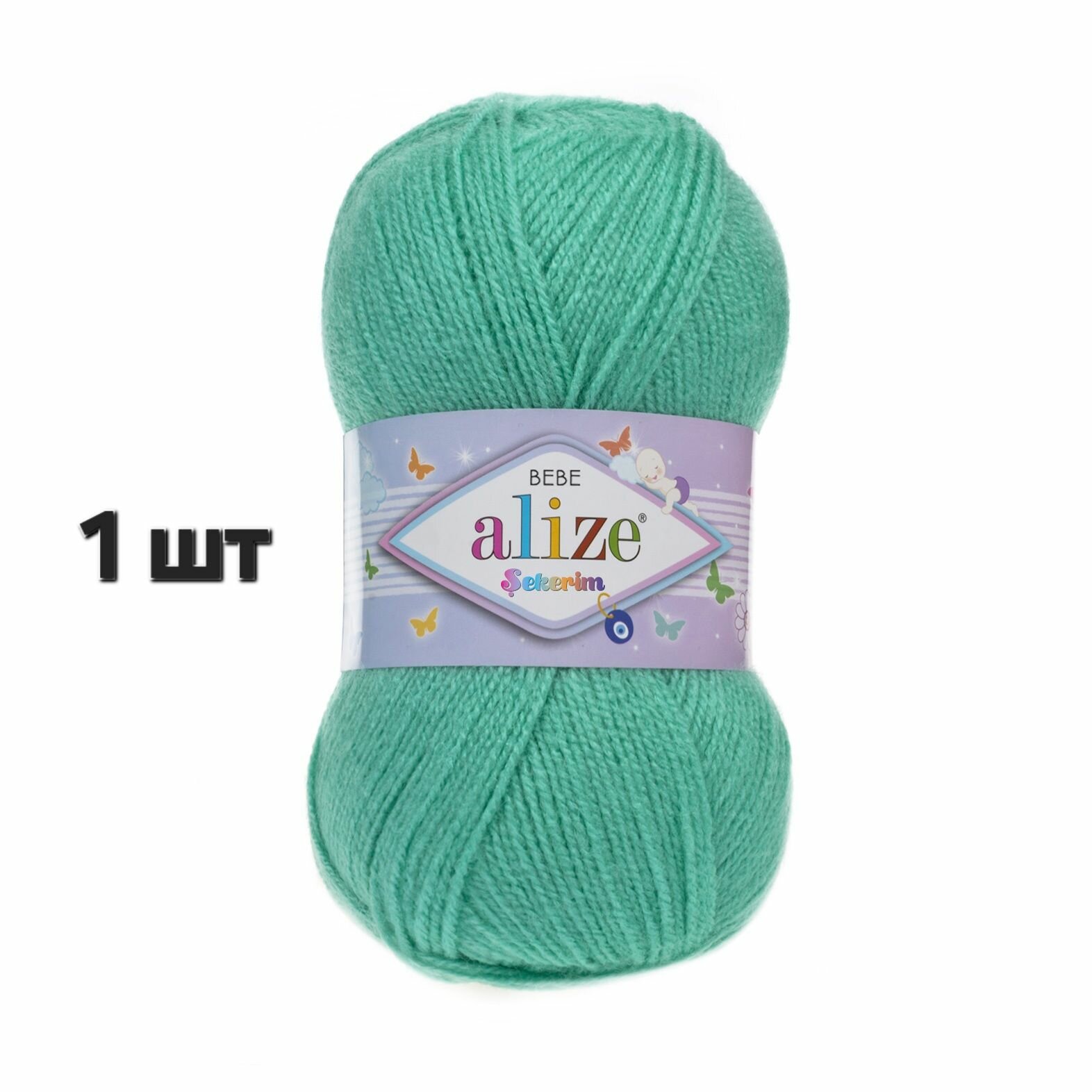 Пряжа для вязания Alize Sekerim Bebe (Шекерим Беби) - 1 моток 19 водяная зелень, детская гипоаллергенная, 100% акрил, 320м/100г