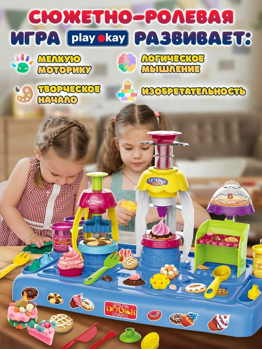 Набор для лепки из пластилина Play Okay Домашняя кондитерская, подарочный для творчества и рукоделия детский с формочками игровой для мальчика и девочки, развивающие игры для малышей - 37 предметов интересное: