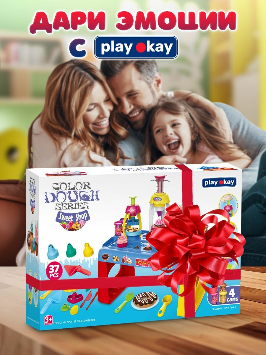 Купить Набор для лепки из пластилина Play Okay Домашняя кондитерская, подарочный для творчества и рукоделия детский с формочками игровой для мальчика и девочки, развивающие игры для малышей - 37 предметов