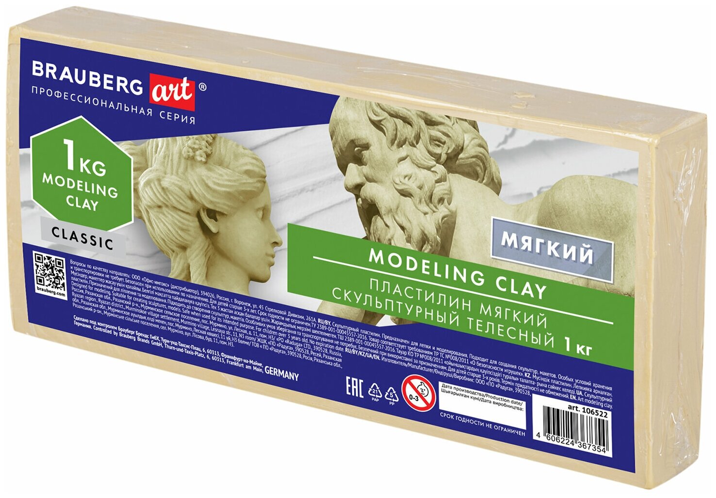 Купить Brauberg Пластилин скульптурный Art Classic телесный 1 кг мягкий 106522