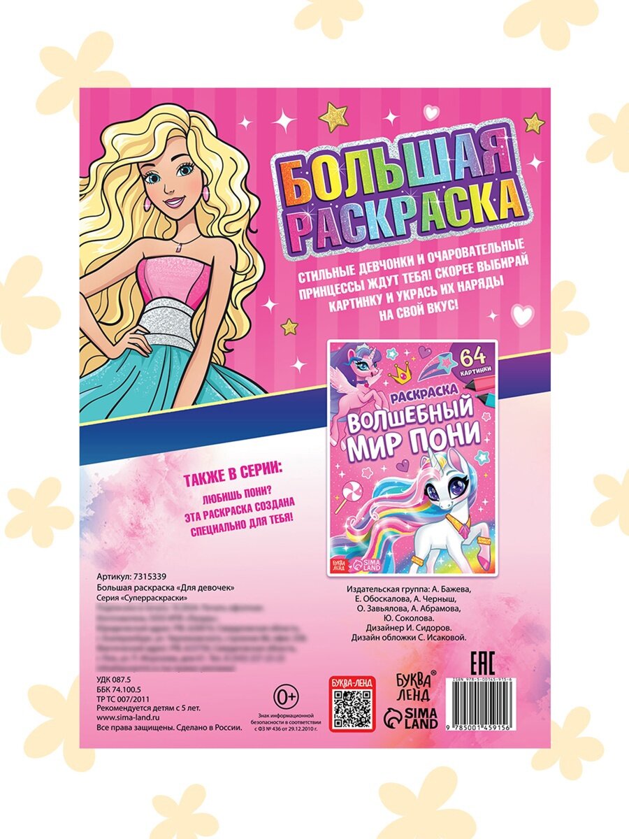 Ниже Вы можете прочитать отзывы на Большая раскраска «Для девочек», 68 стр, формат А4, ознакомится с подробными характеристиками, посмотреть интересные обзоры и фотографии на Большая раскраска «Для девочек», 68 стр, формат А4.