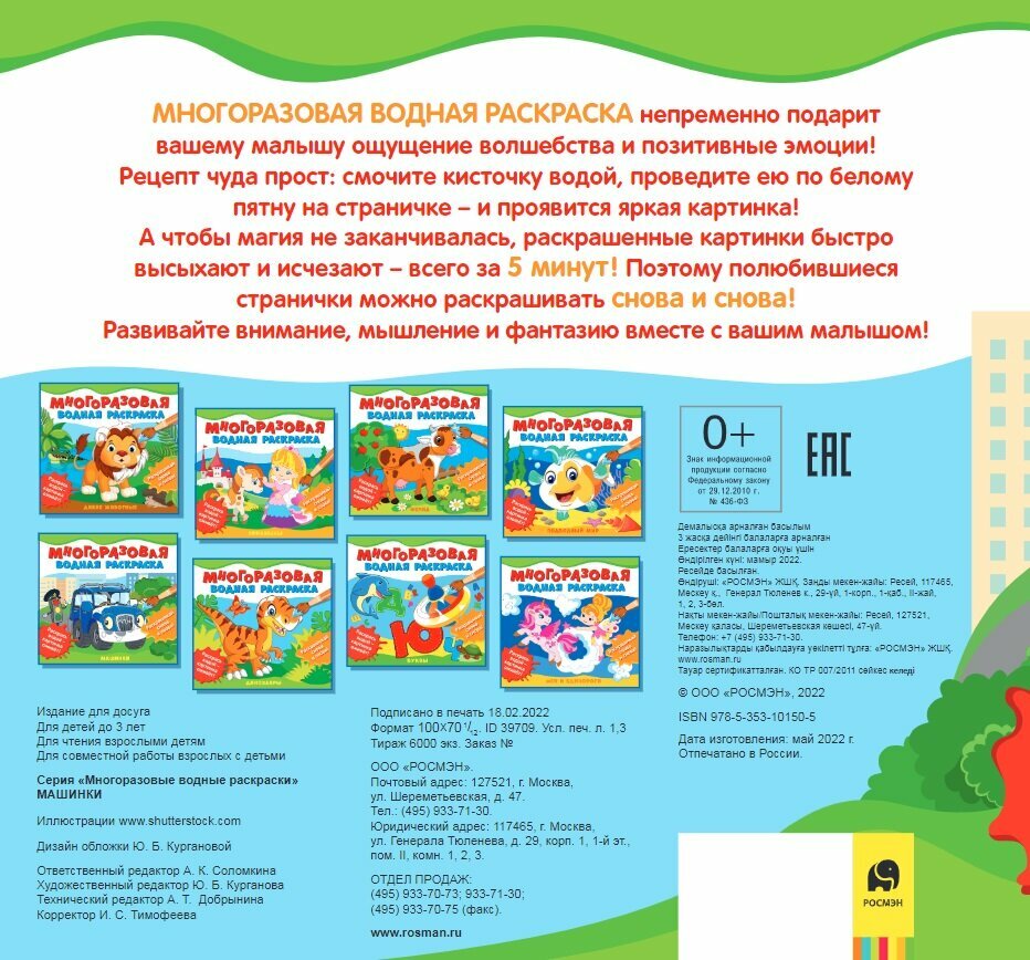 Купить Соломкина А. К. (ред.). Многоразовые водные раскраски. Машинки. Детский досуг
