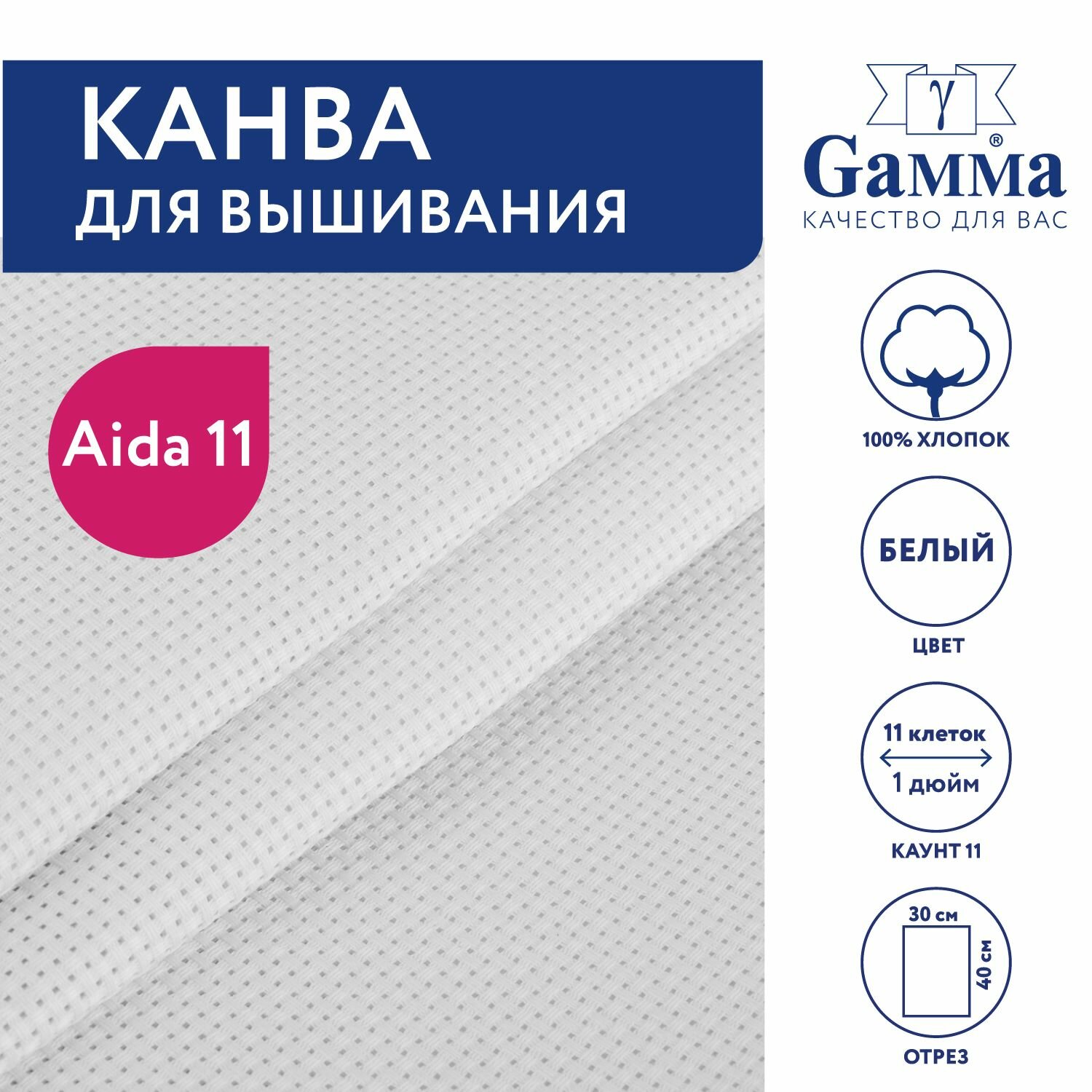 Купить Канва K03 "Gamma" Aida №11 цв. 100% хлопок 30 х 40 см белый