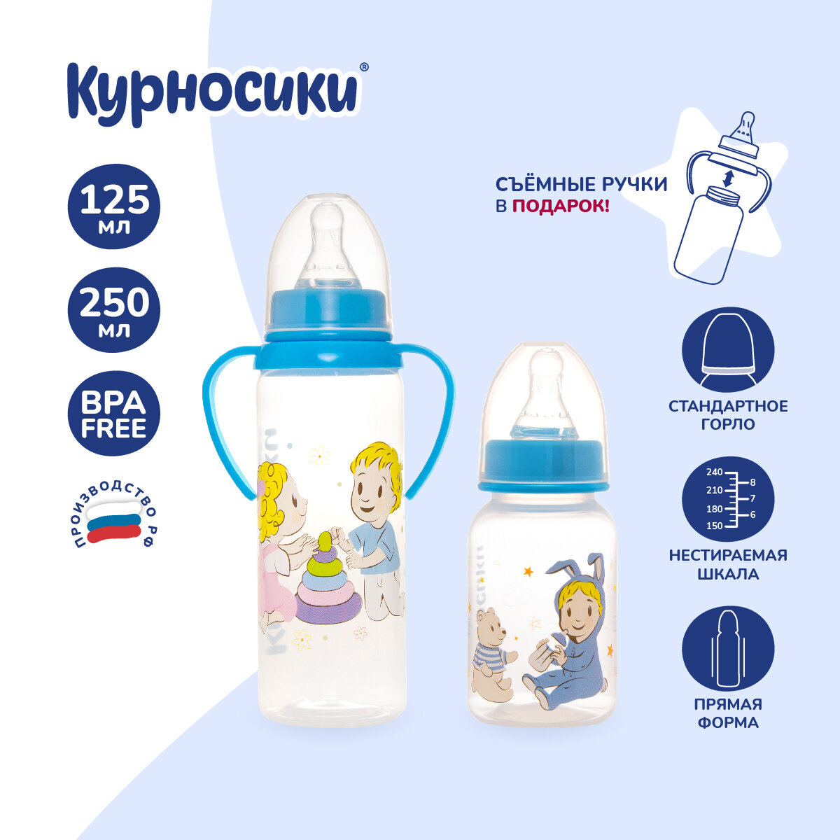 Бутылочки для кормления Курносики 125 мл и 250 мл, от 0+ мес.
