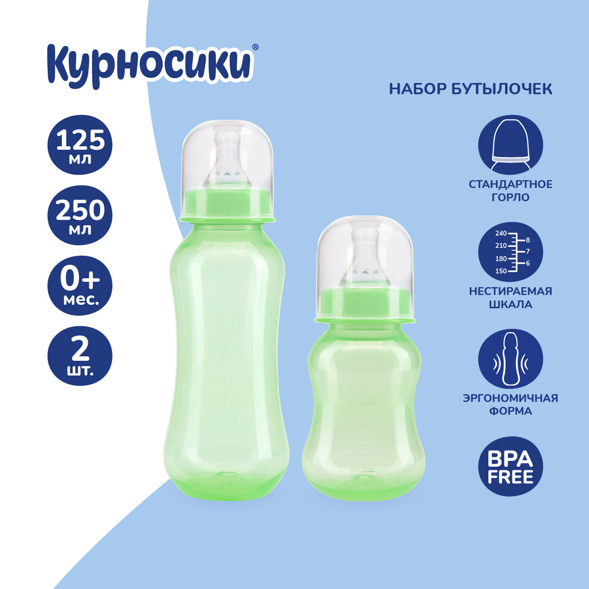 Купить Бутылочка для кормления новорожденных Курносики набор из 2 шт 125 мл и 250 мл, от 0+ мес, зеленые
