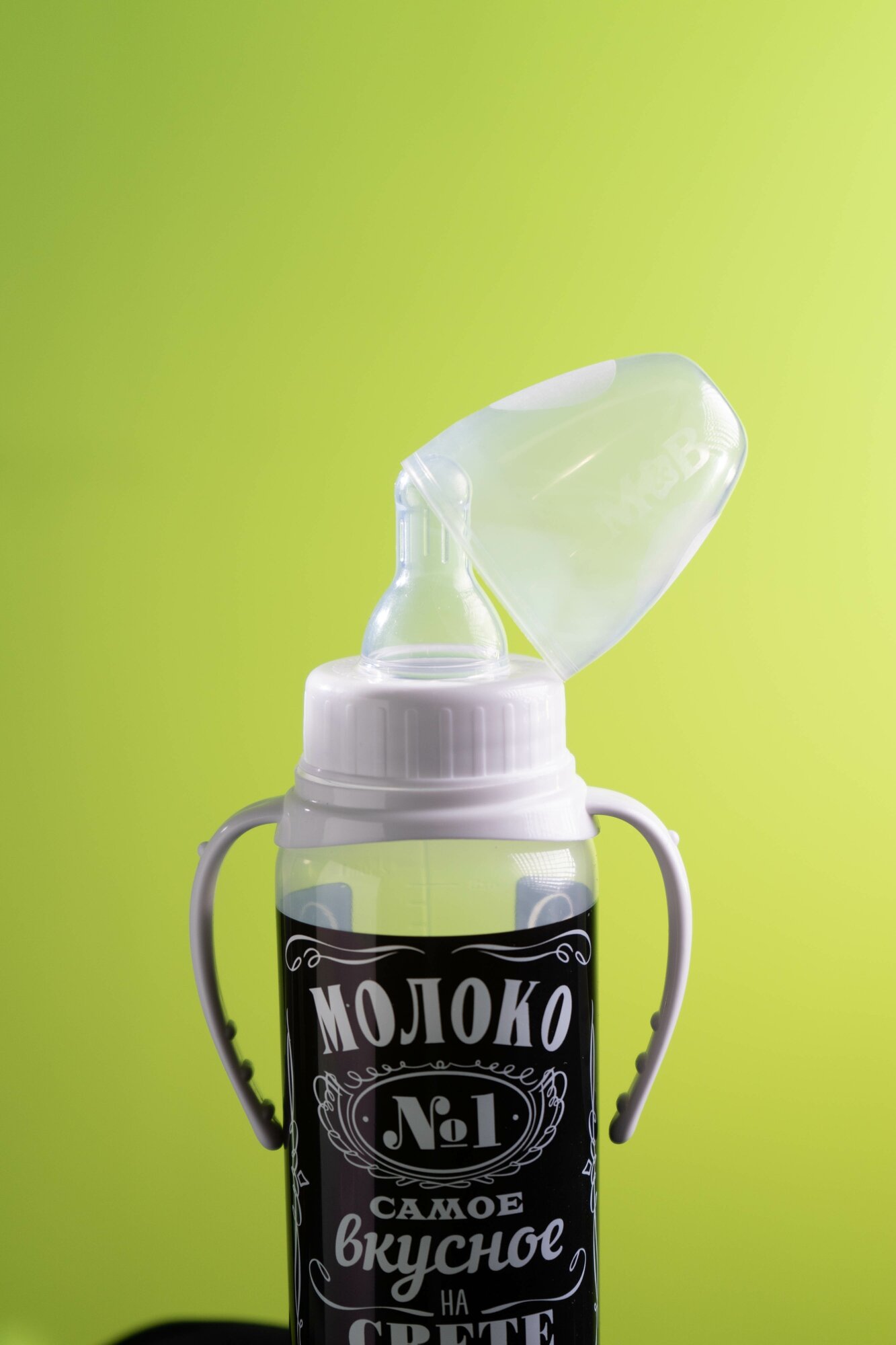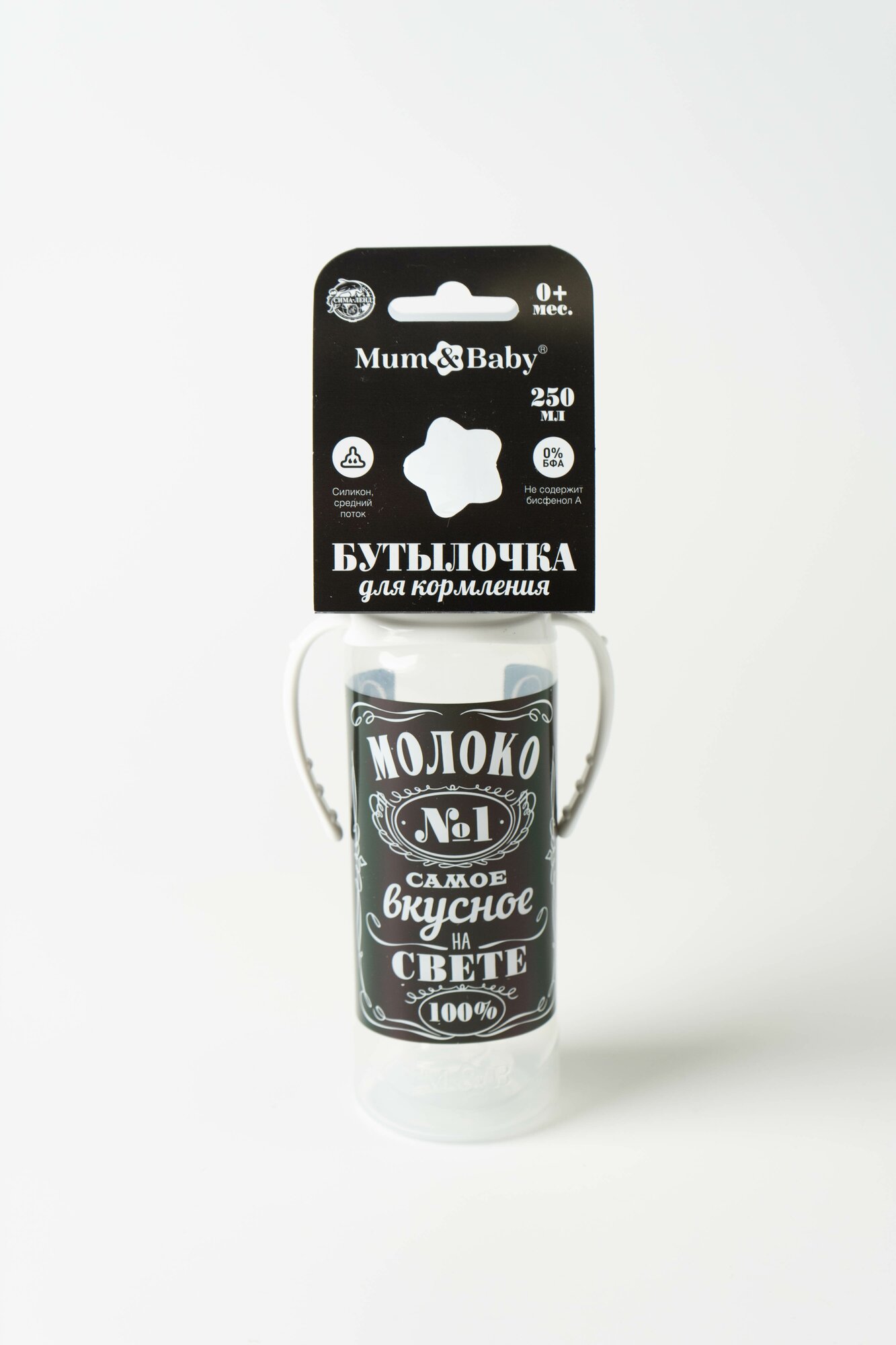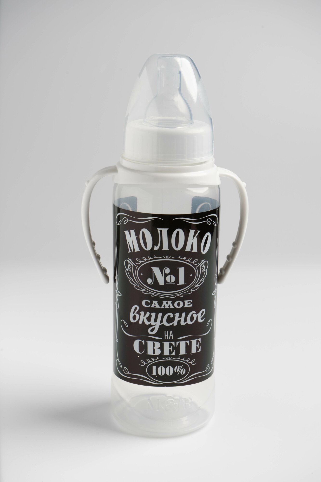 Бутылочка для кормления «Молоко № 1», классическая, с ручками, объем: 250 мл, для детей и малышей от 0 месяцев, цвет чёрный интересное: