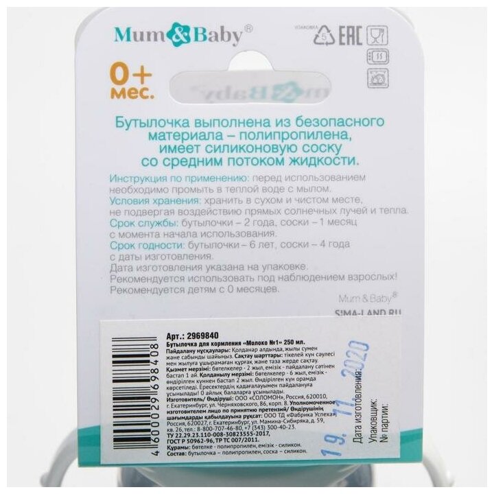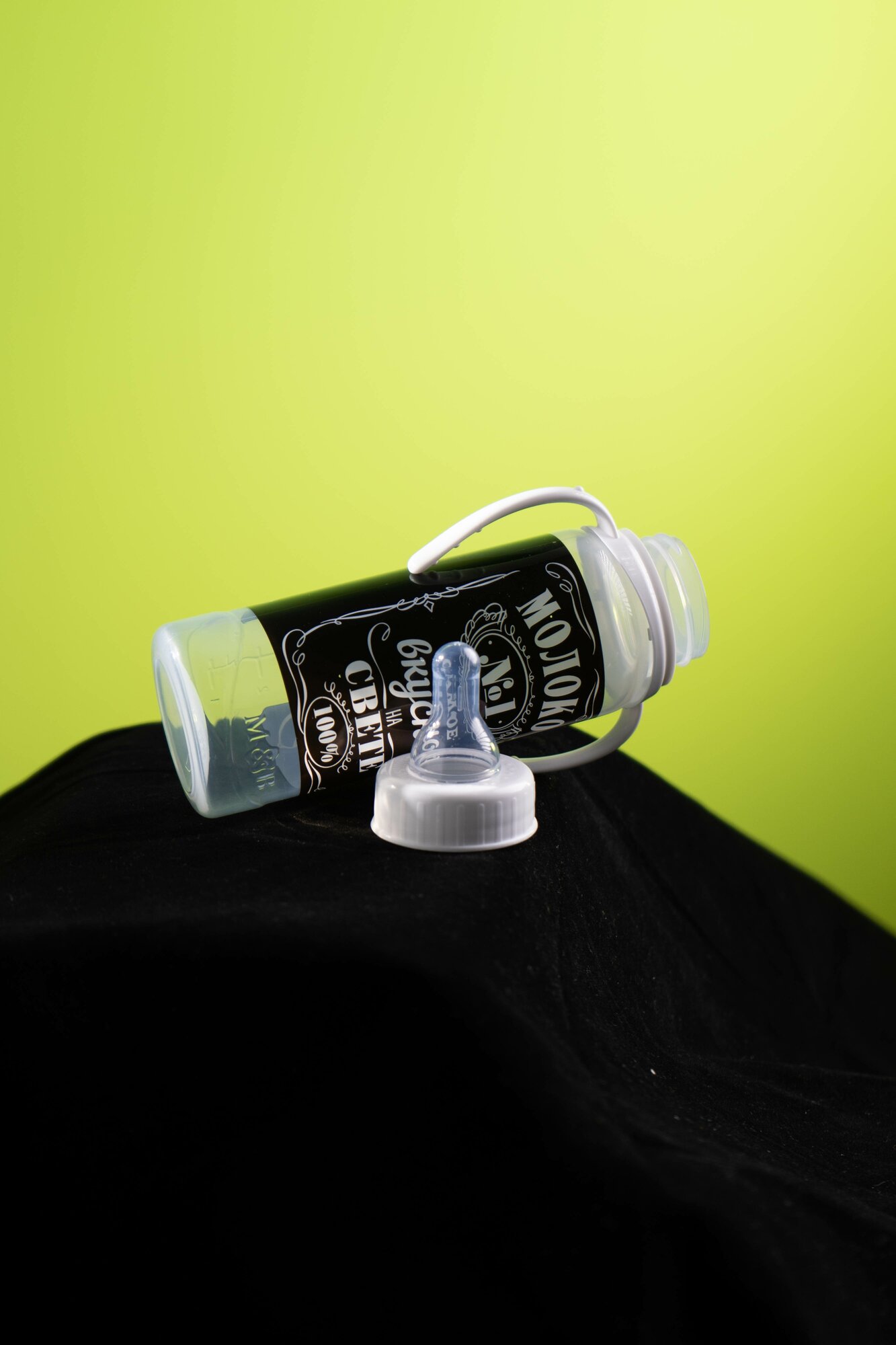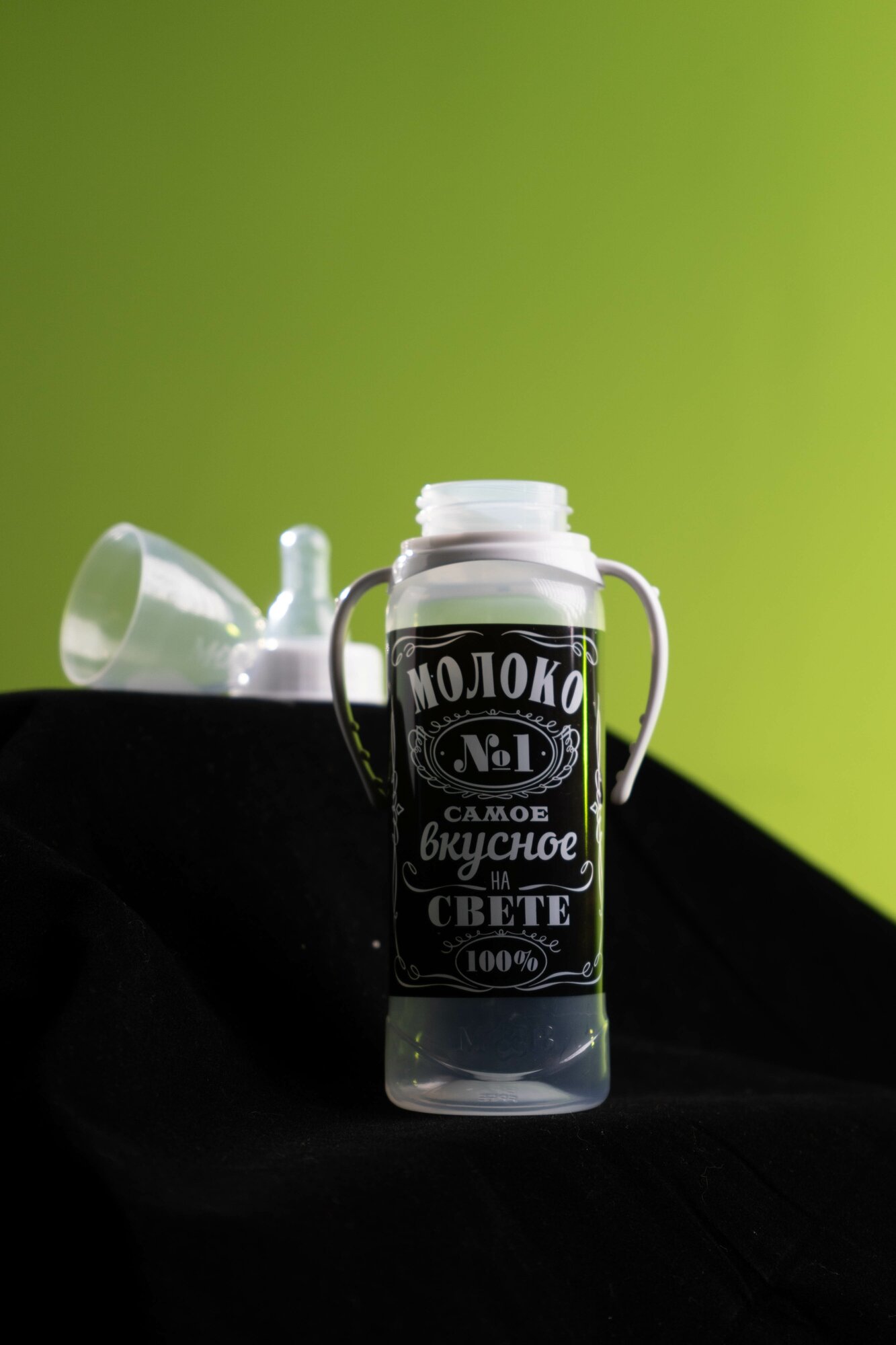 Бутылочка для кормления «Молоко № 1», классическая, с ручками, объем: 250 мл, для детей и малышей от 0 месяцев, цвет чёрный интересное: