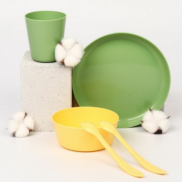 Набор детской посуды Lalababy Follow Me (тарелка, миска, стаканчик, 2 ложки) фисташковый пломбир LA1