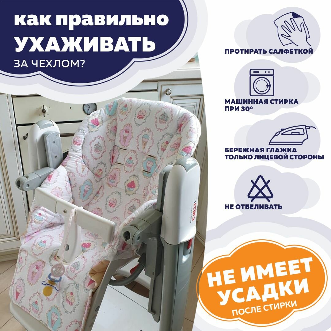 Сменный чехол Peg Perego Tatamia "Стрекоза" на стульчик для кормления, Пироженки. Хлопок