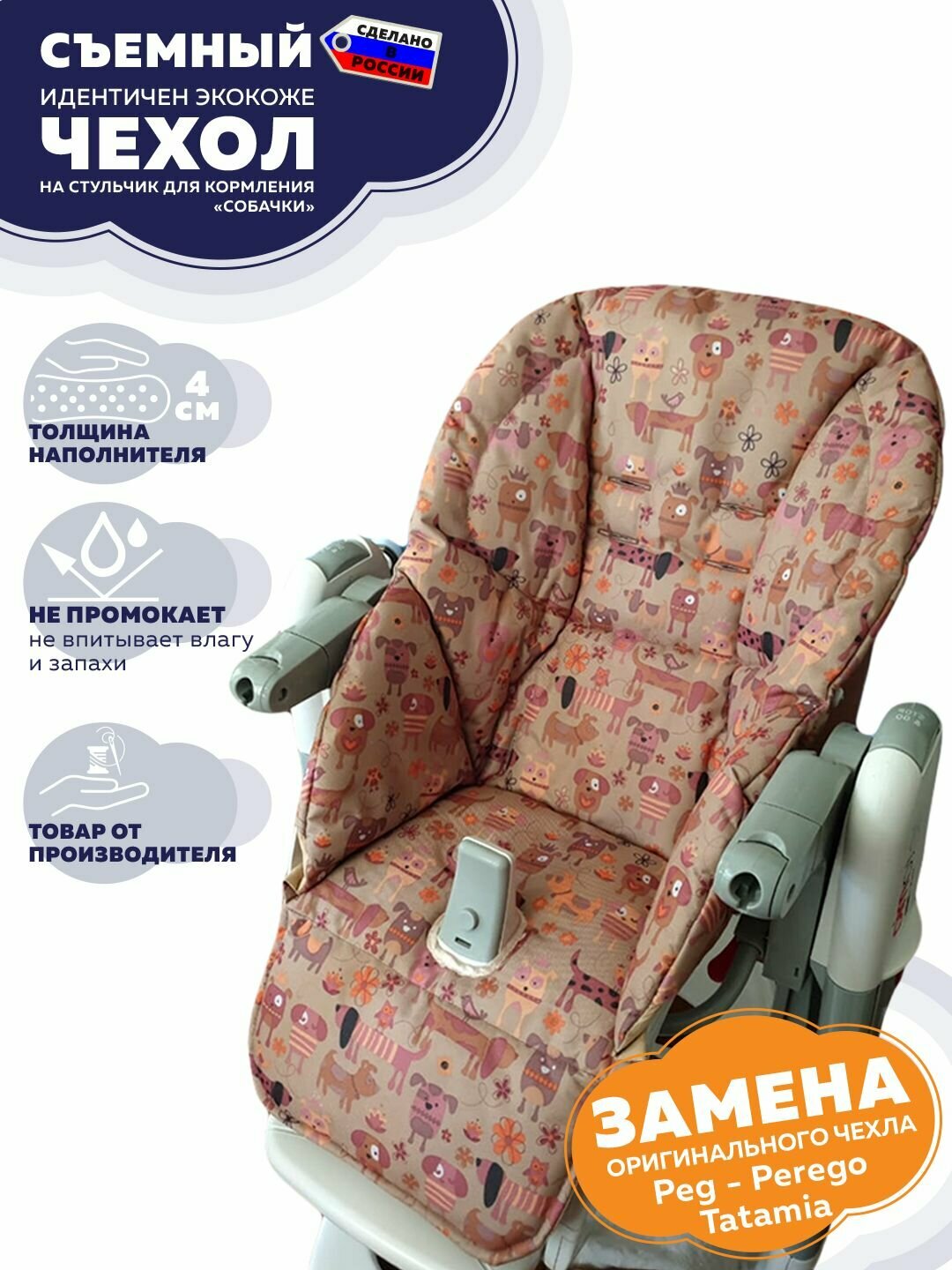 Сменный чехол на стульчик для кормления Peg Perego Tatamia/ Собачки