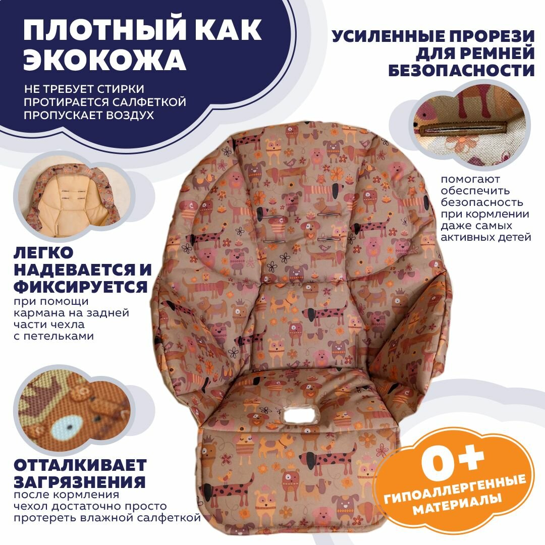 Сменный чехол на стульчик для кормления Peg Perego Tatamia "Стрекоза", Собачки. Водостойкий