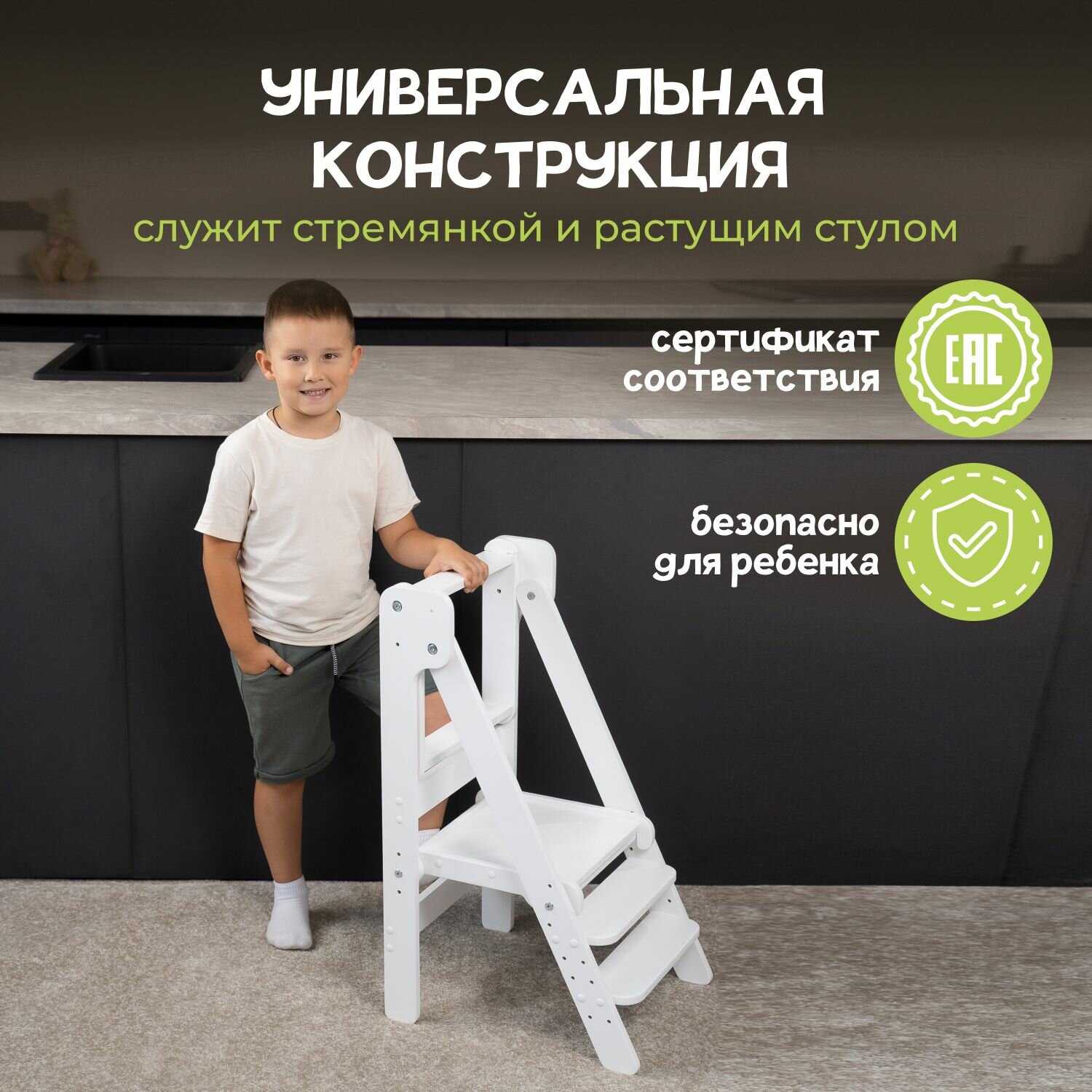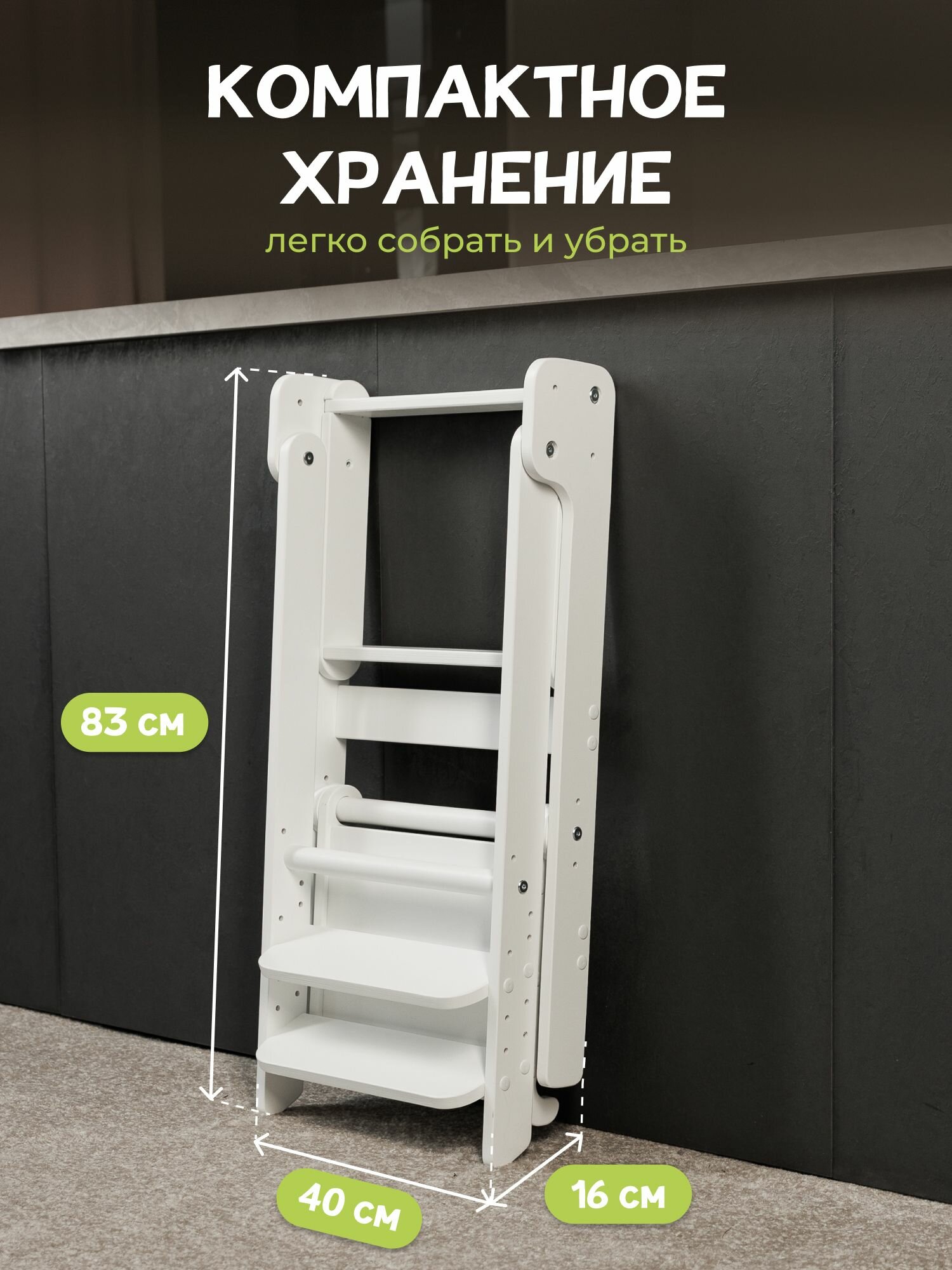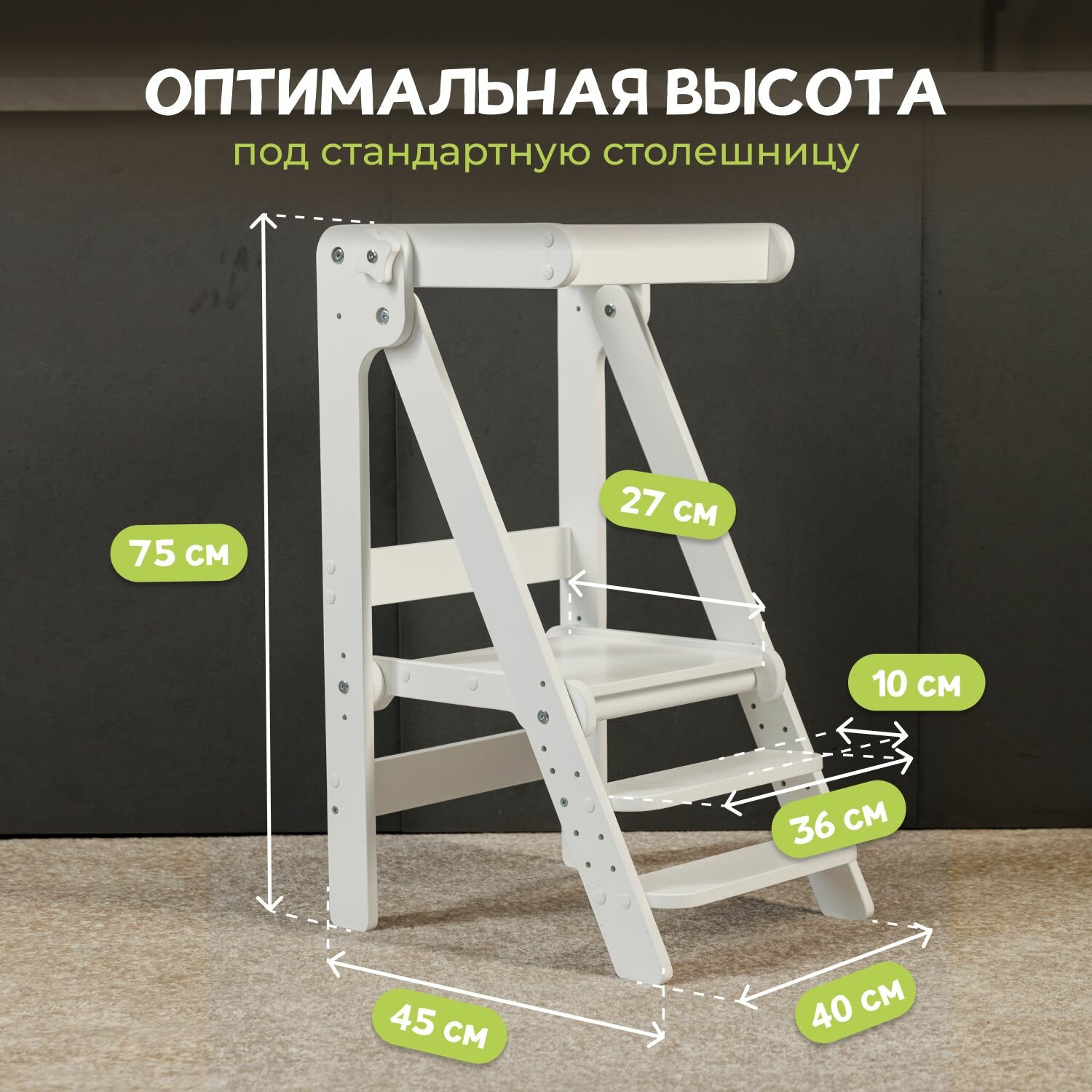 Башня помощника Монтессори "Я сам" с доской-ограничителем белый+лак PAPPADO стульчик для кормления