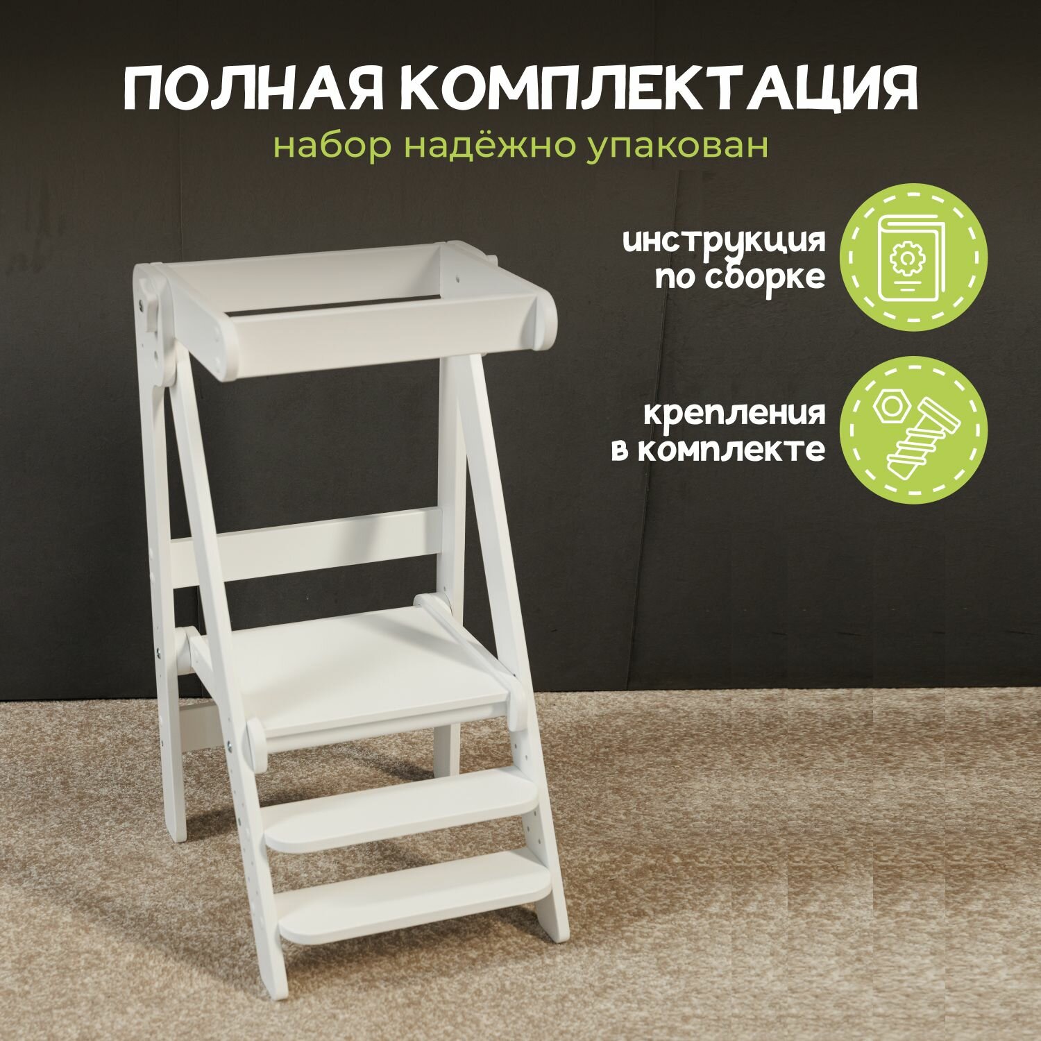 | Комплектация | башня помощника Монтессори / фурнитура / инструкция по сборке |