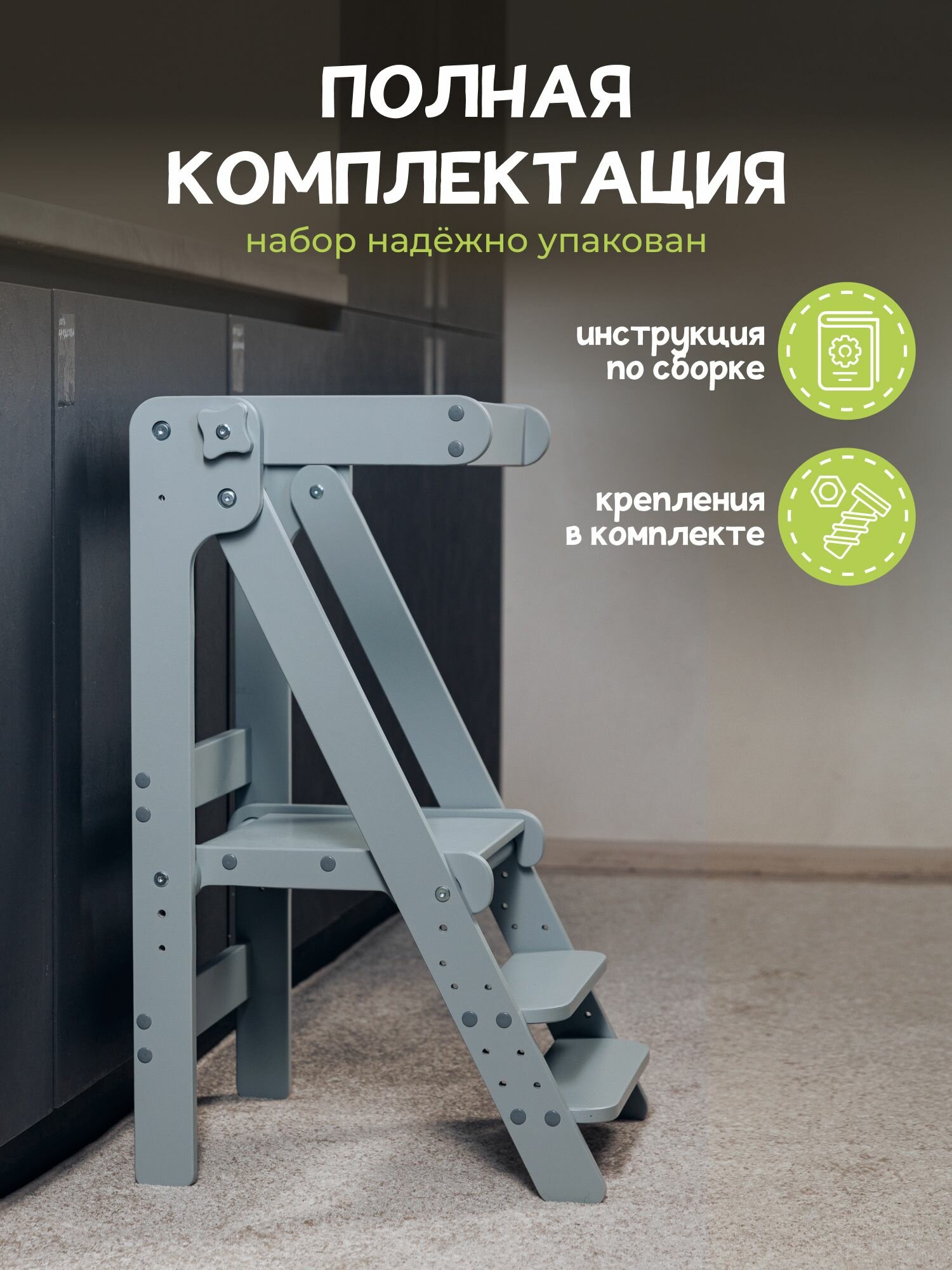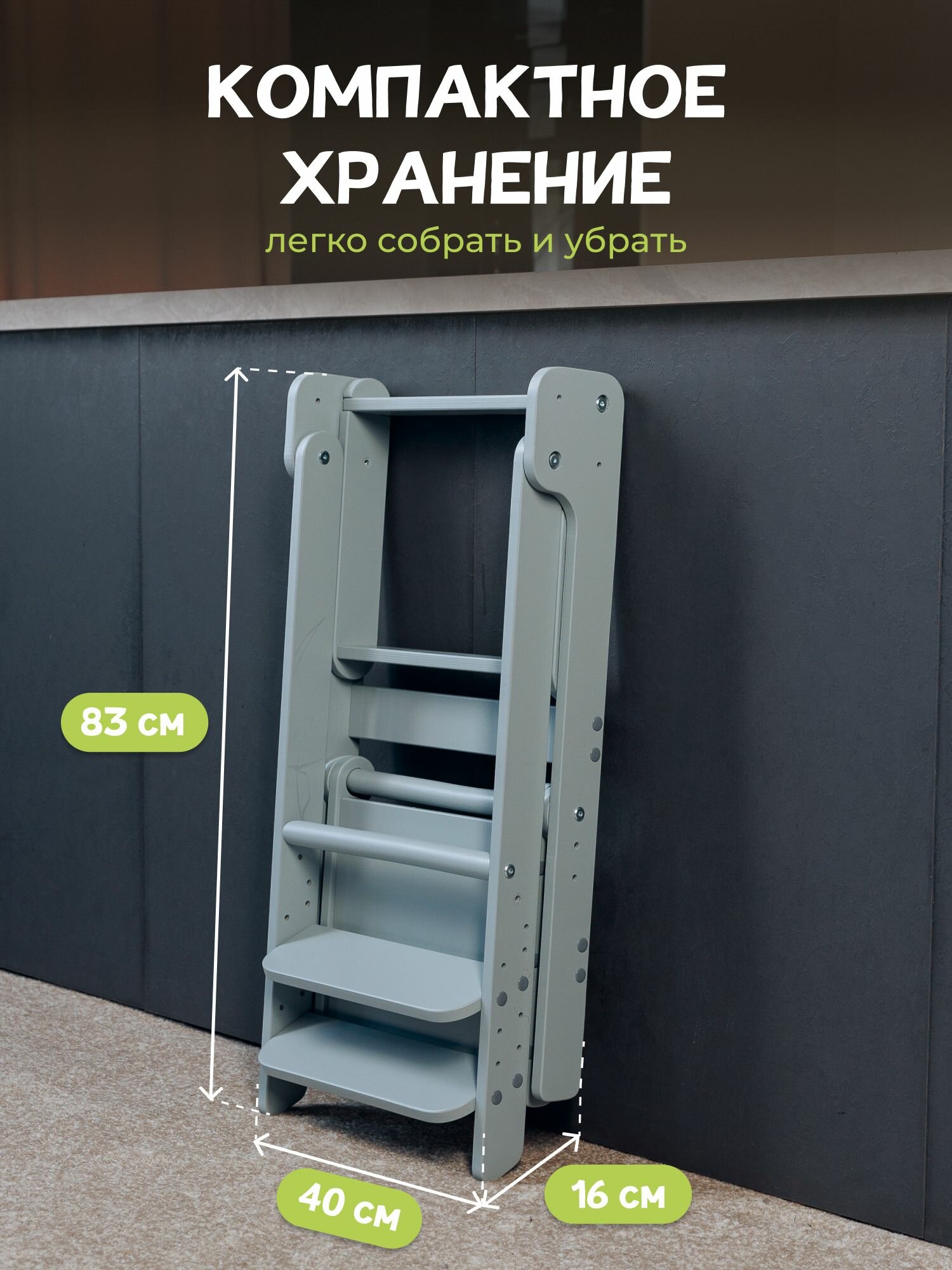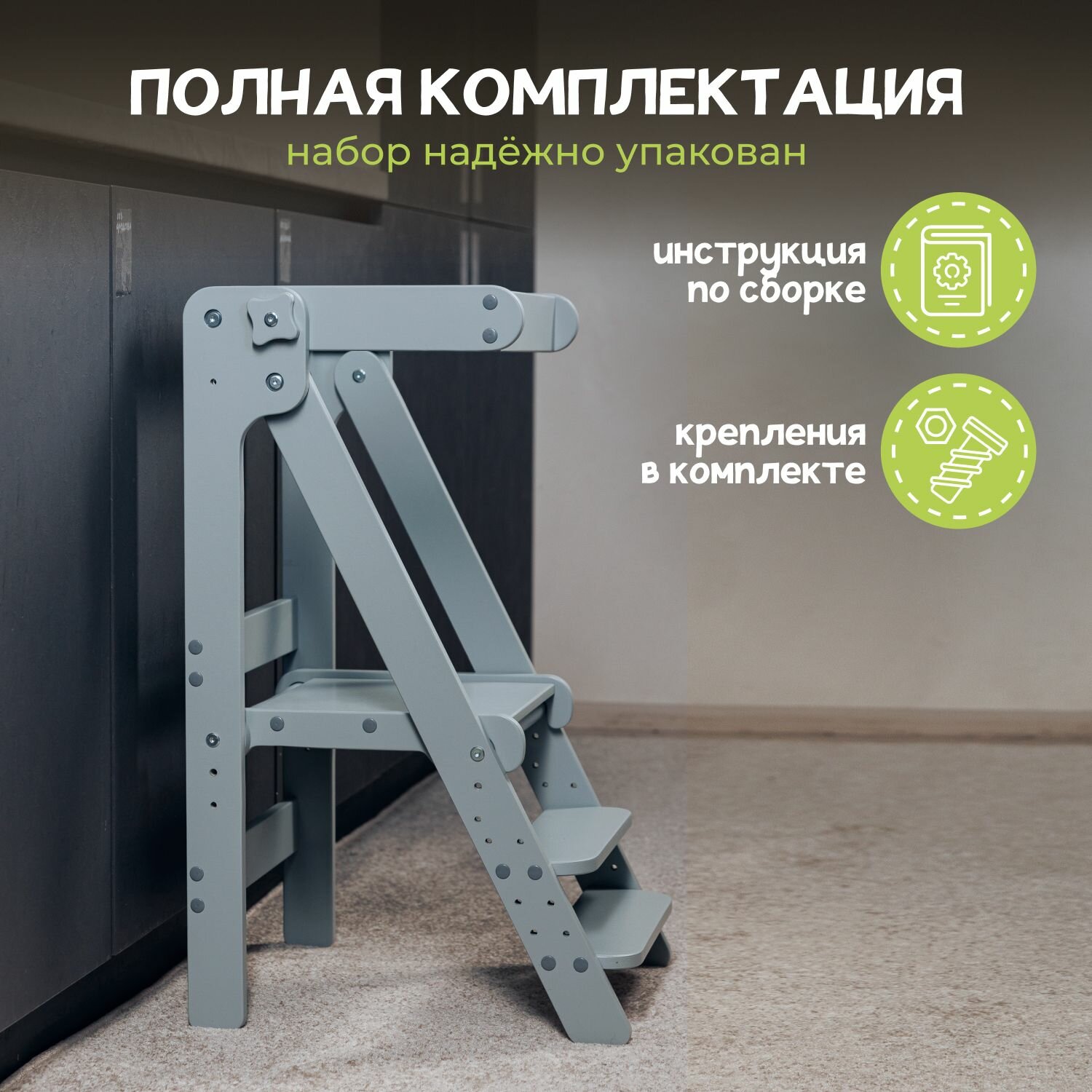 Башня помощника Монтессори "Я сам" серо-белый PAPPADO стульчик для кормления