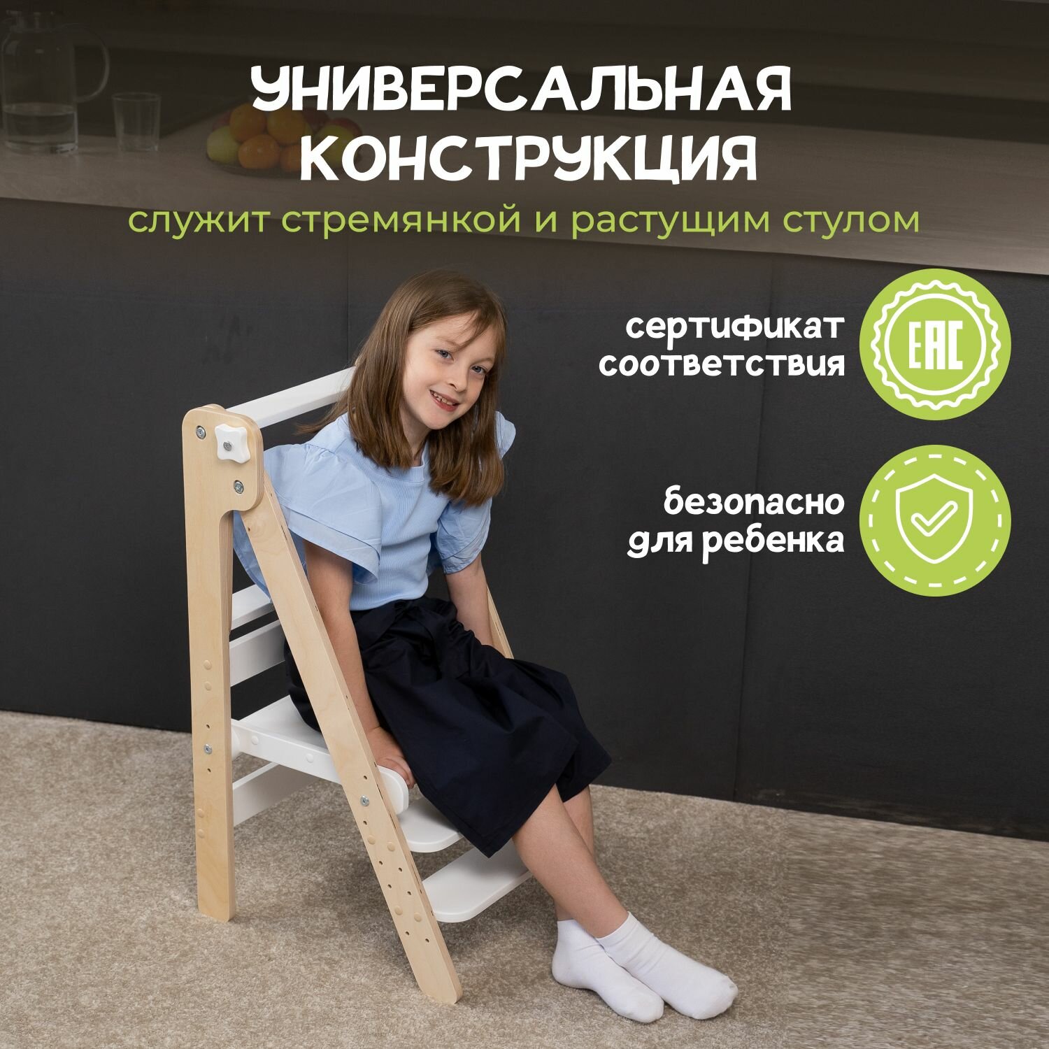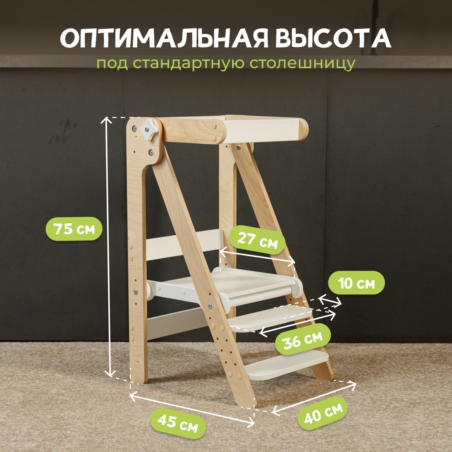 Башня помощника Монтессори "Я сам" шлифованный с доской PAPPADO стульчик для кормления