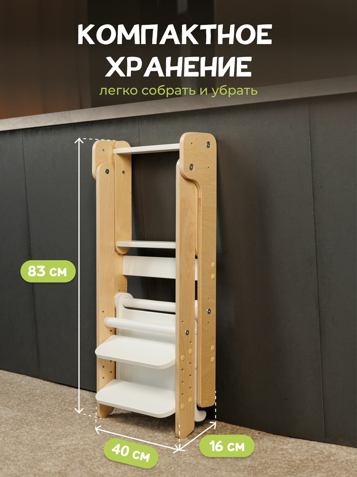 Башня помощника Монтессори "Я сам" шлифованный PAPPADO стульчик для кормления