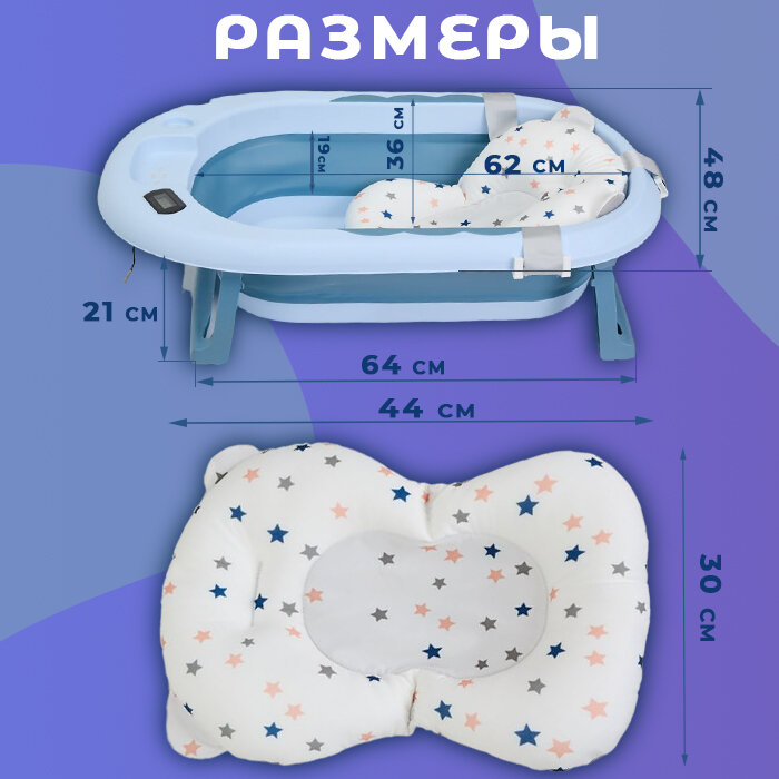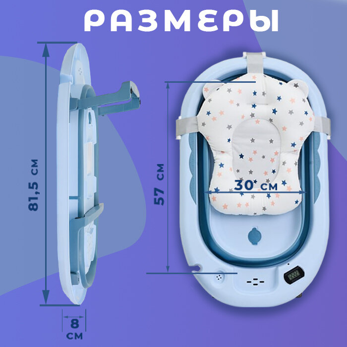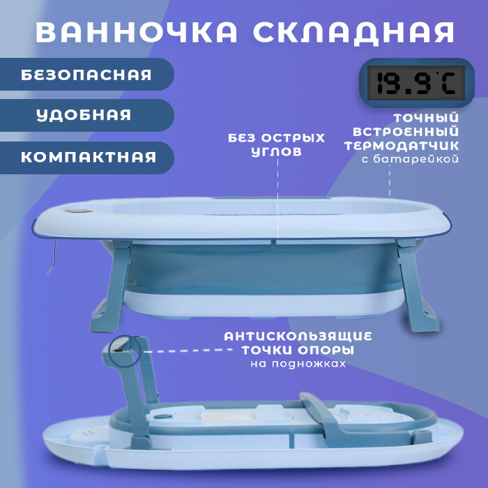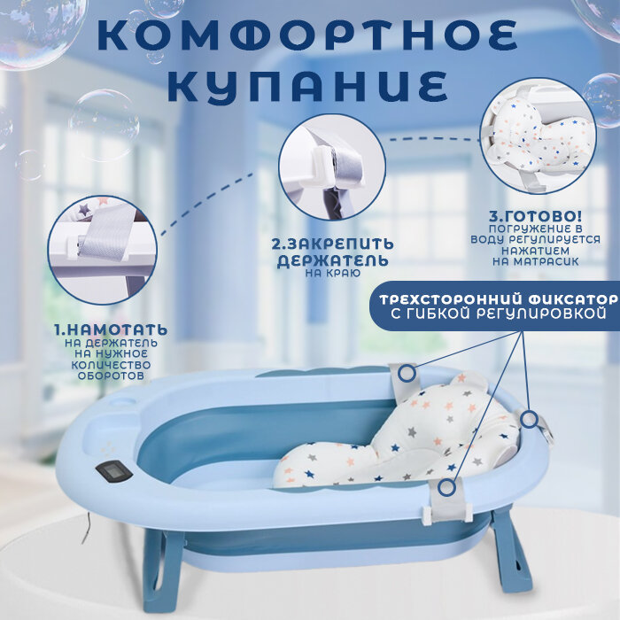 Ванночка детская Agex Aqua, складная, с термометром и матрасиком, голубая интересное: