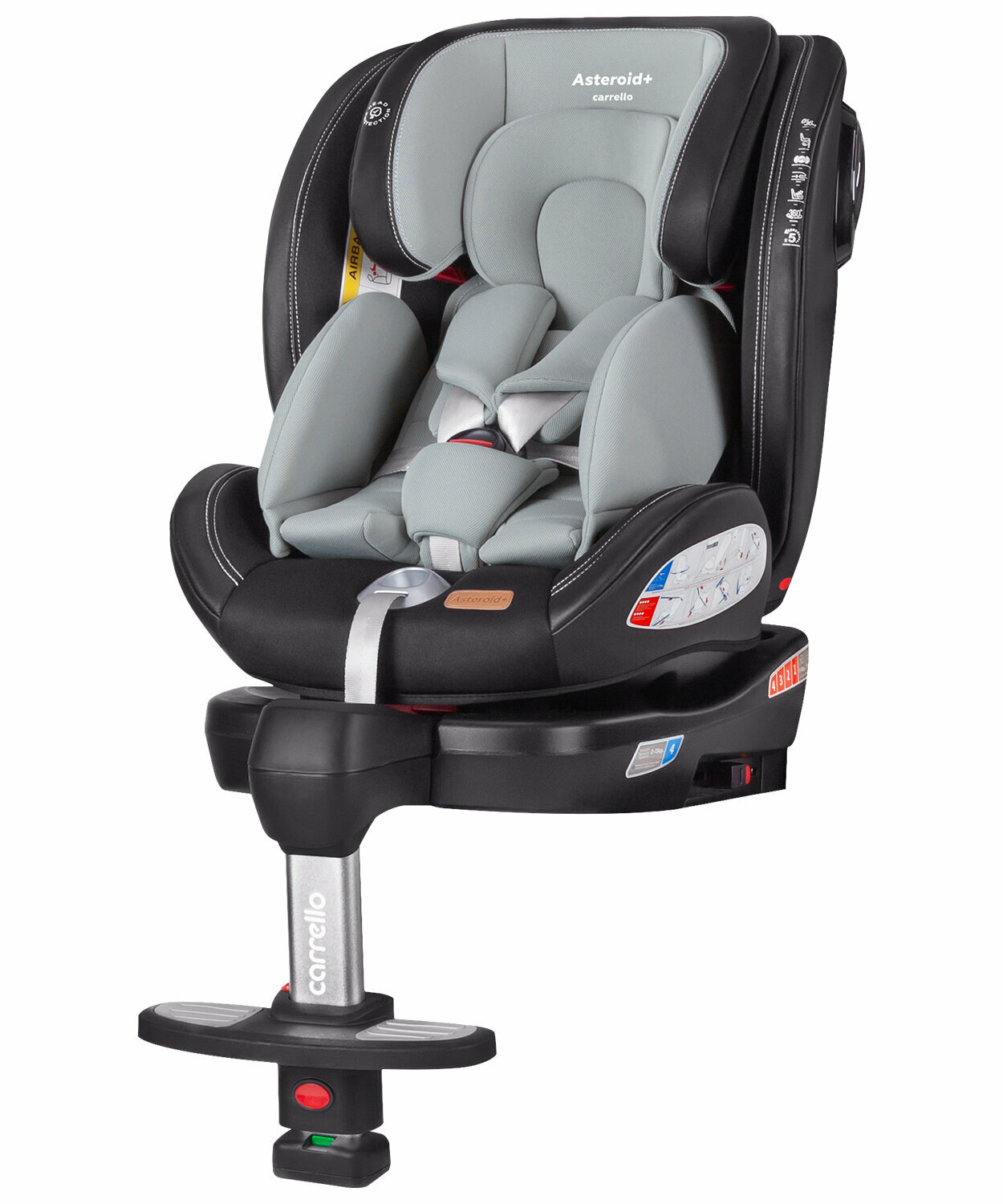 Автокресло детское от 0 до 12 лет Carrello Asteroid + с подножкой и креплением Isofix, серый