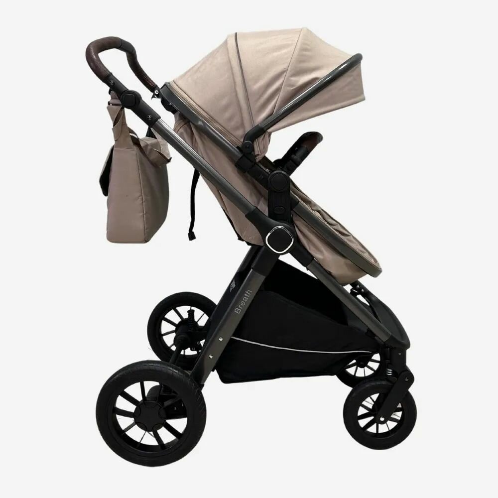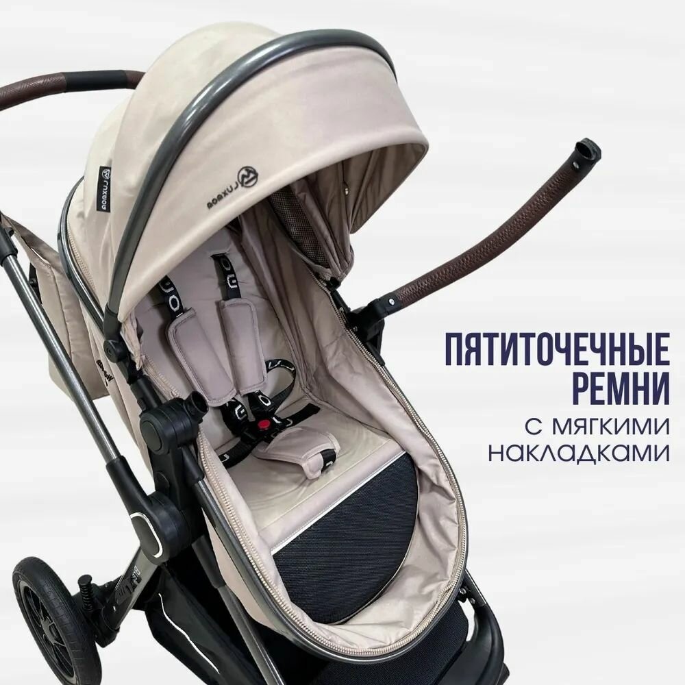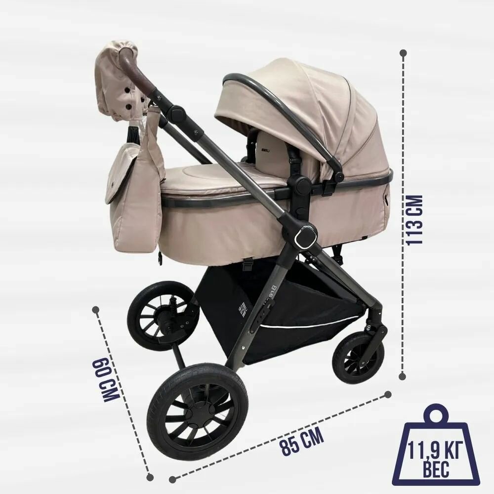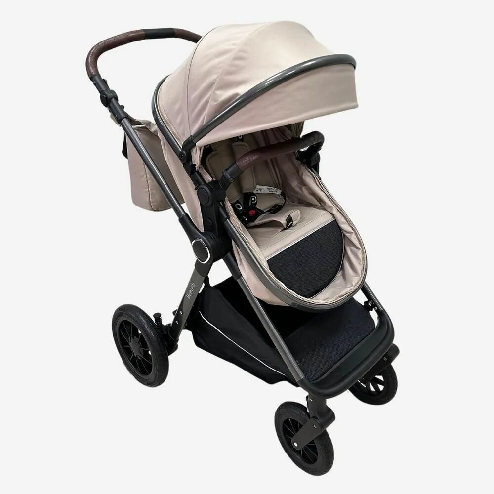Детская коляска трансформер с перекидной ручкой Luxmom A4 3в1 хаки (бежевый)