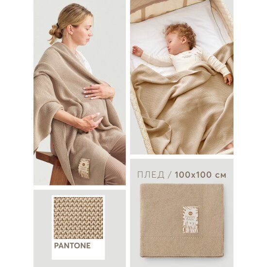 Купить Плед Happy Baby вязаный 100х100 см beige