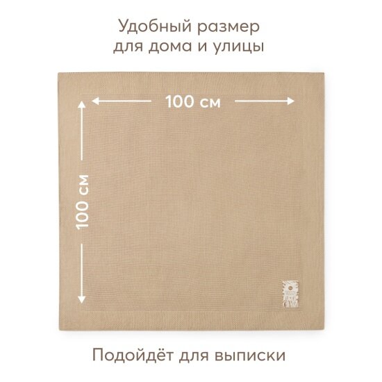 90120, Плед для новорожденных 100х100 Happy Baby, одеяло для новорожденного, покрывало в коляску, хлопок акрил, бежевый