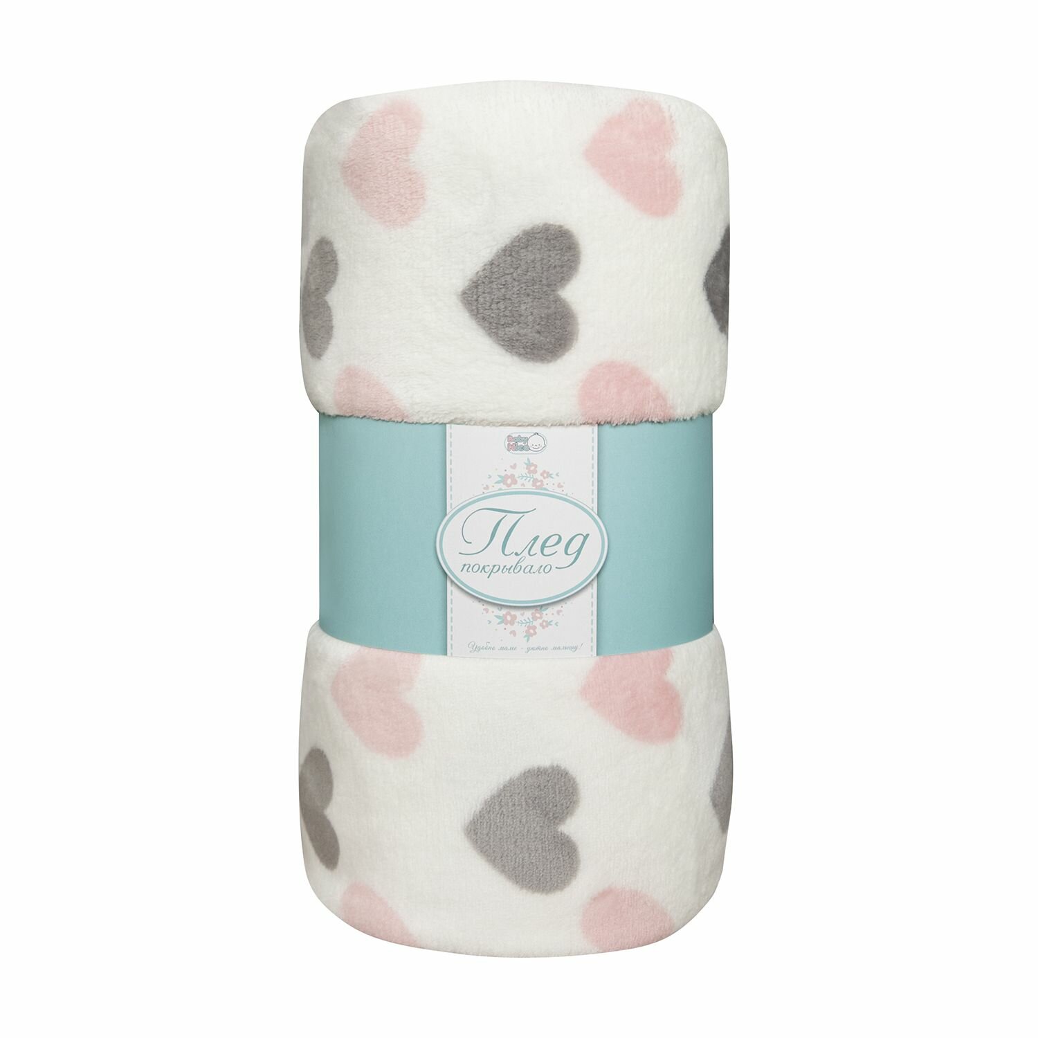 Плед для новорожденных плюшевый 100х140 , плед детский для девочек на выписку "Сердечки" Baby Nice