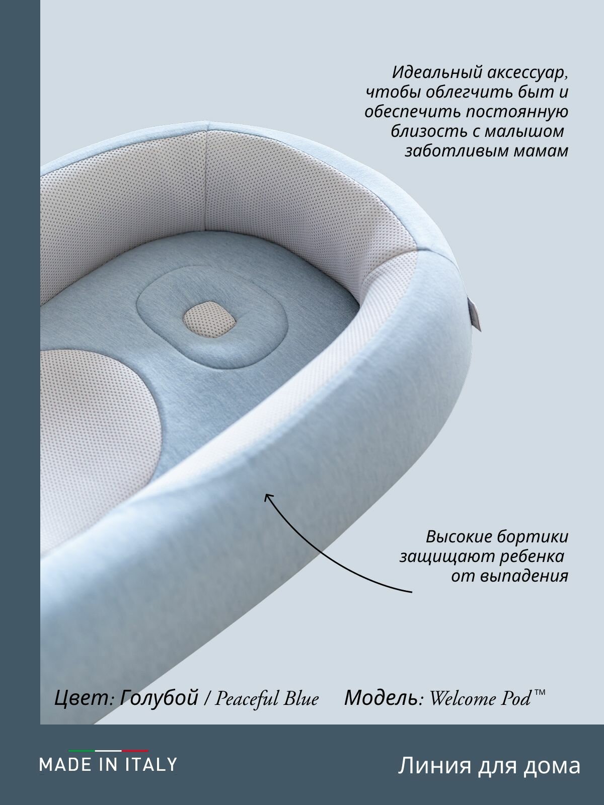 Кокон Welcome Pod цвет Peaceful Blue интересное: