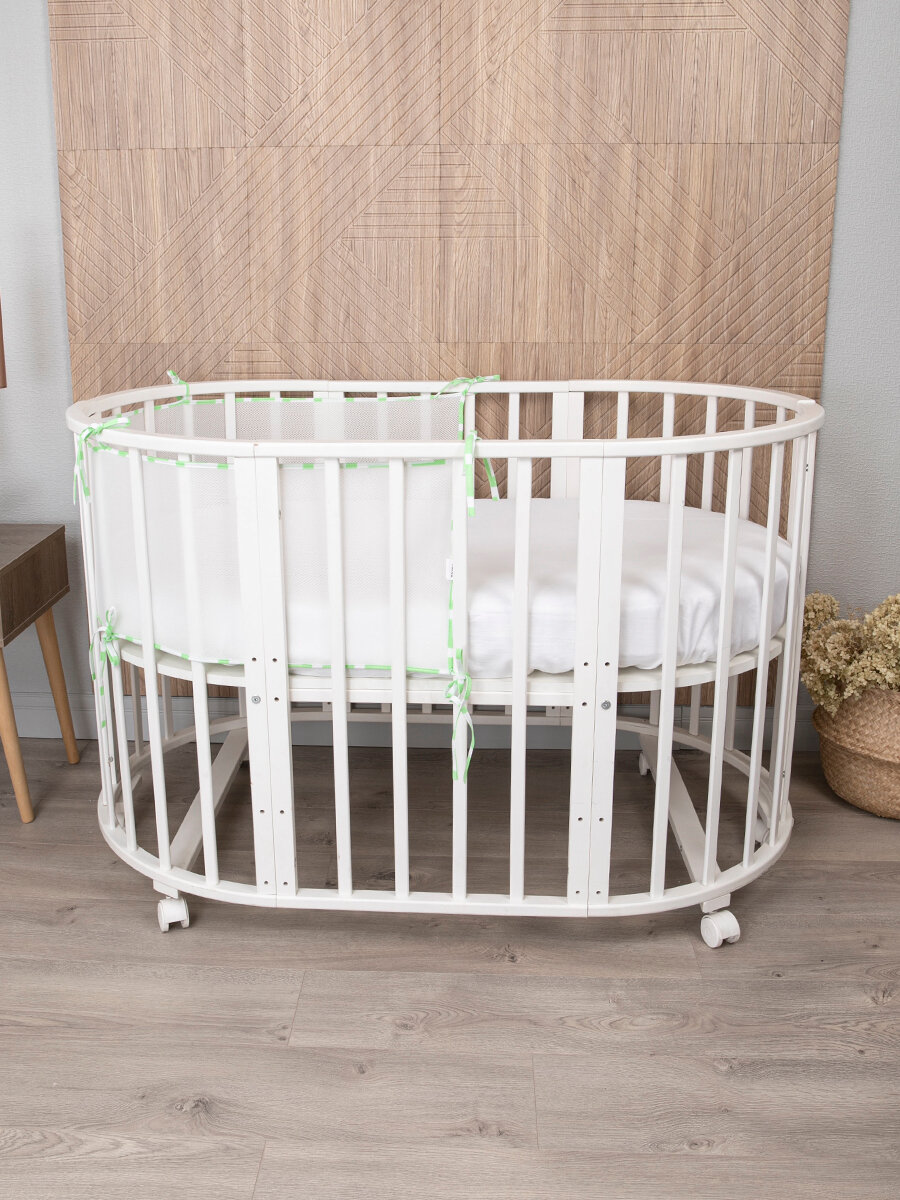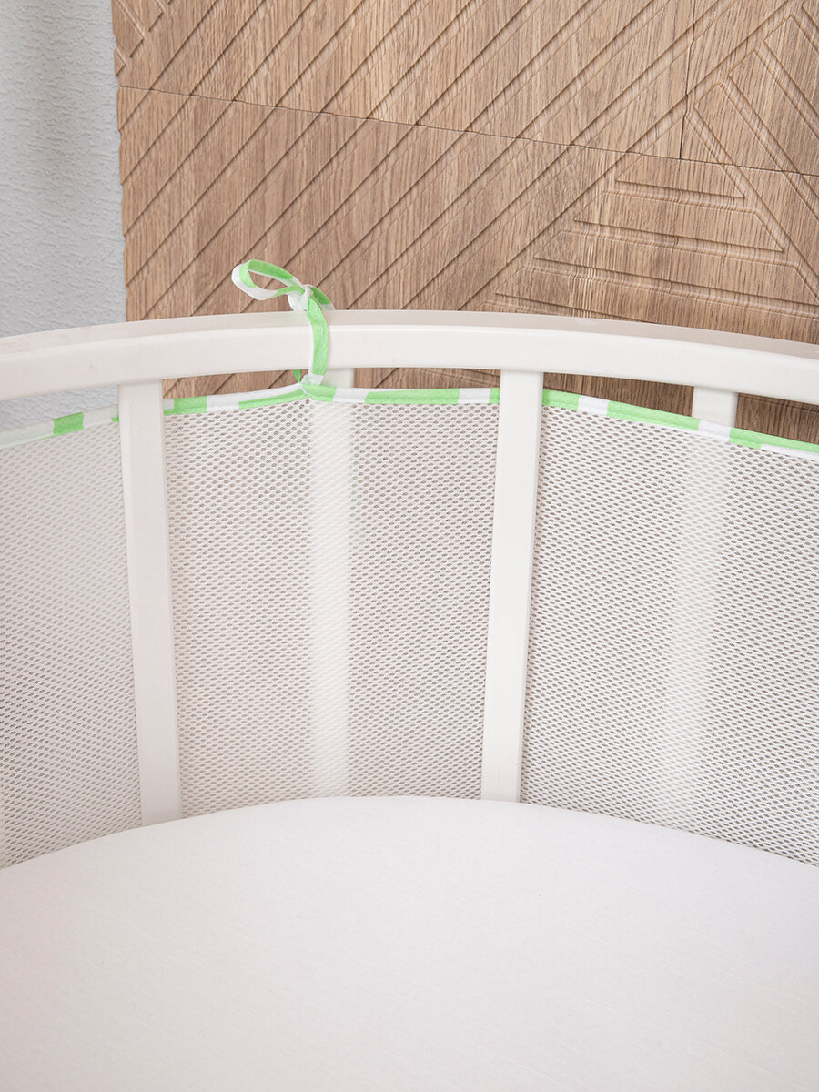 Бортики в кроватку для новорожденных 2 шт сетка защитный 31х180 см, на прямоугольную, круглую, овальную кровать, цвет салатовый