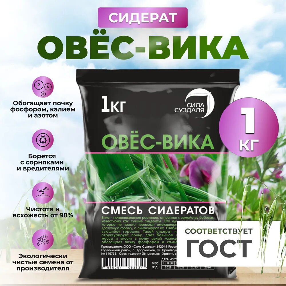 Купить Овёс–Вика, смесь сидератов Сила Суздаля /зеленое удобрение, 1 кг