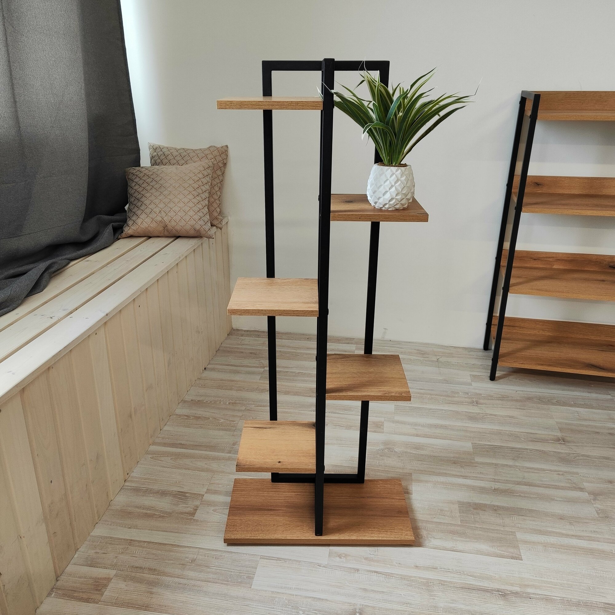 Напольная цветочница в стиле Лофт из ЛДСП и металла для цветов и растений