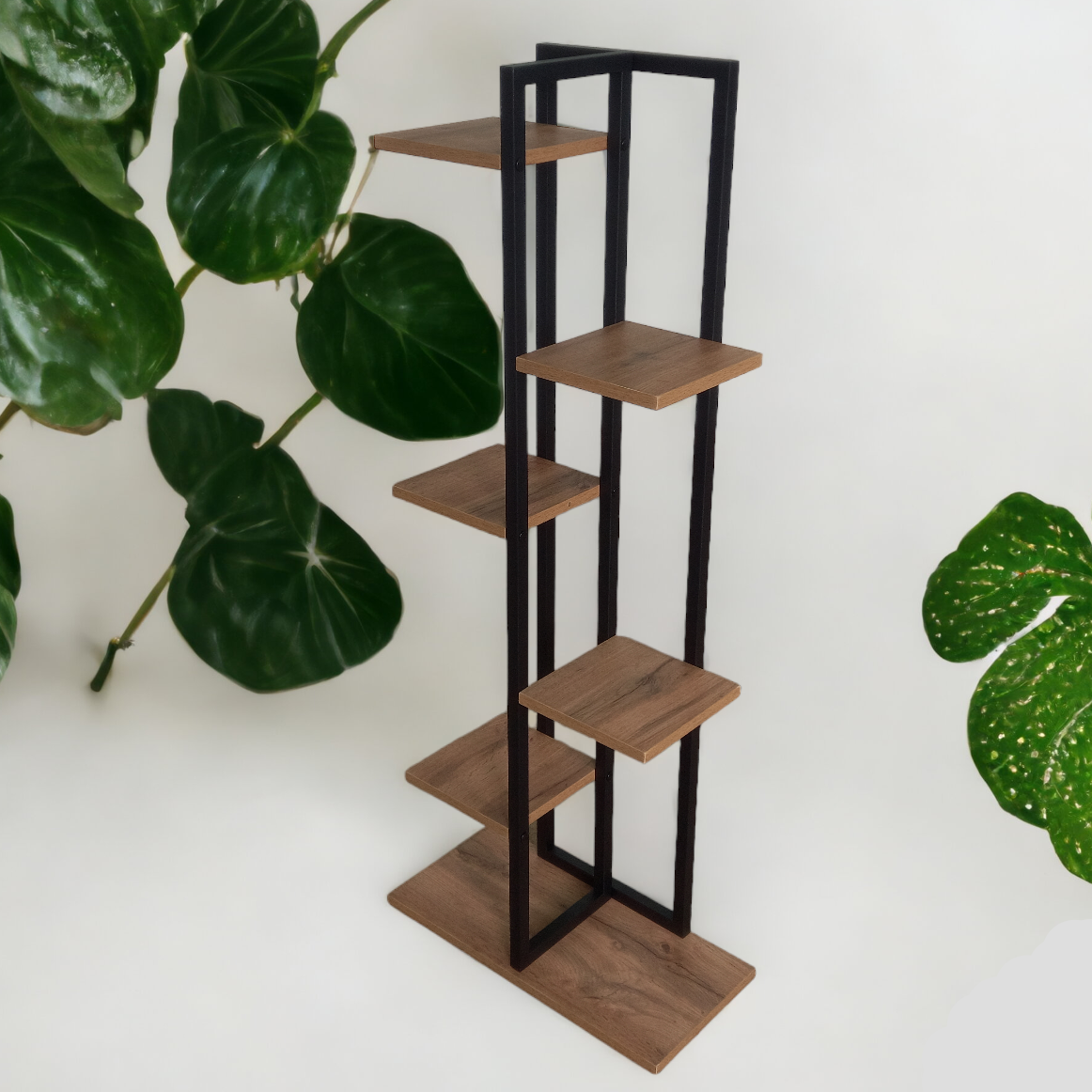 Цветочница AlisMi лофт из ЛДСП и металла, темная, 117х50х20 см, 7 полок