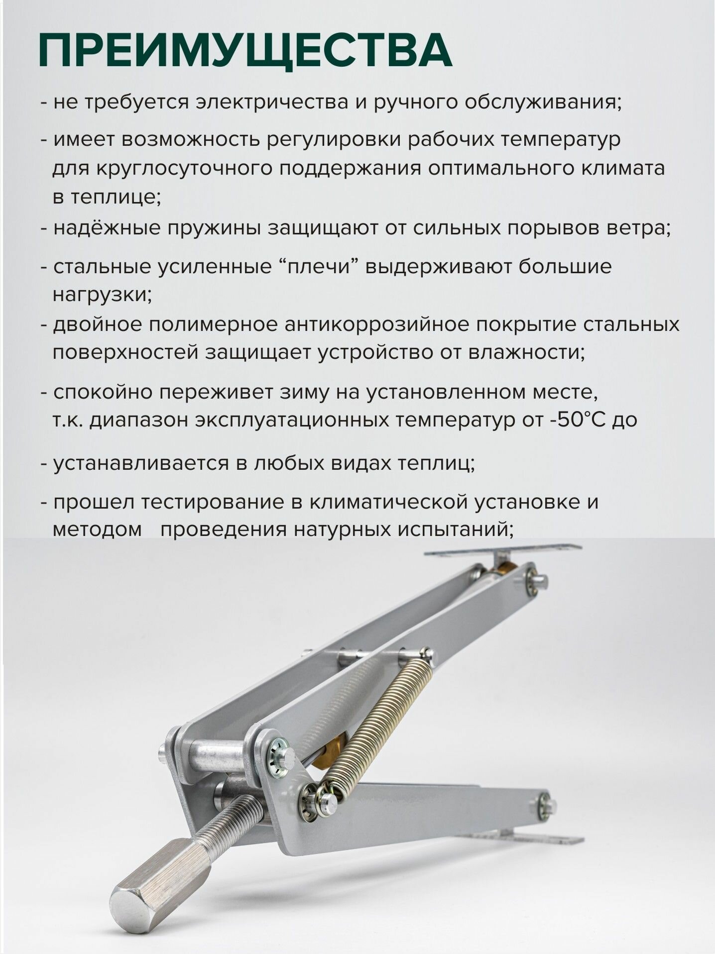 Термопривод, автоматическая система открывания окон для проветривания теплицы, Ботаник, усиленный стальной. интересное: