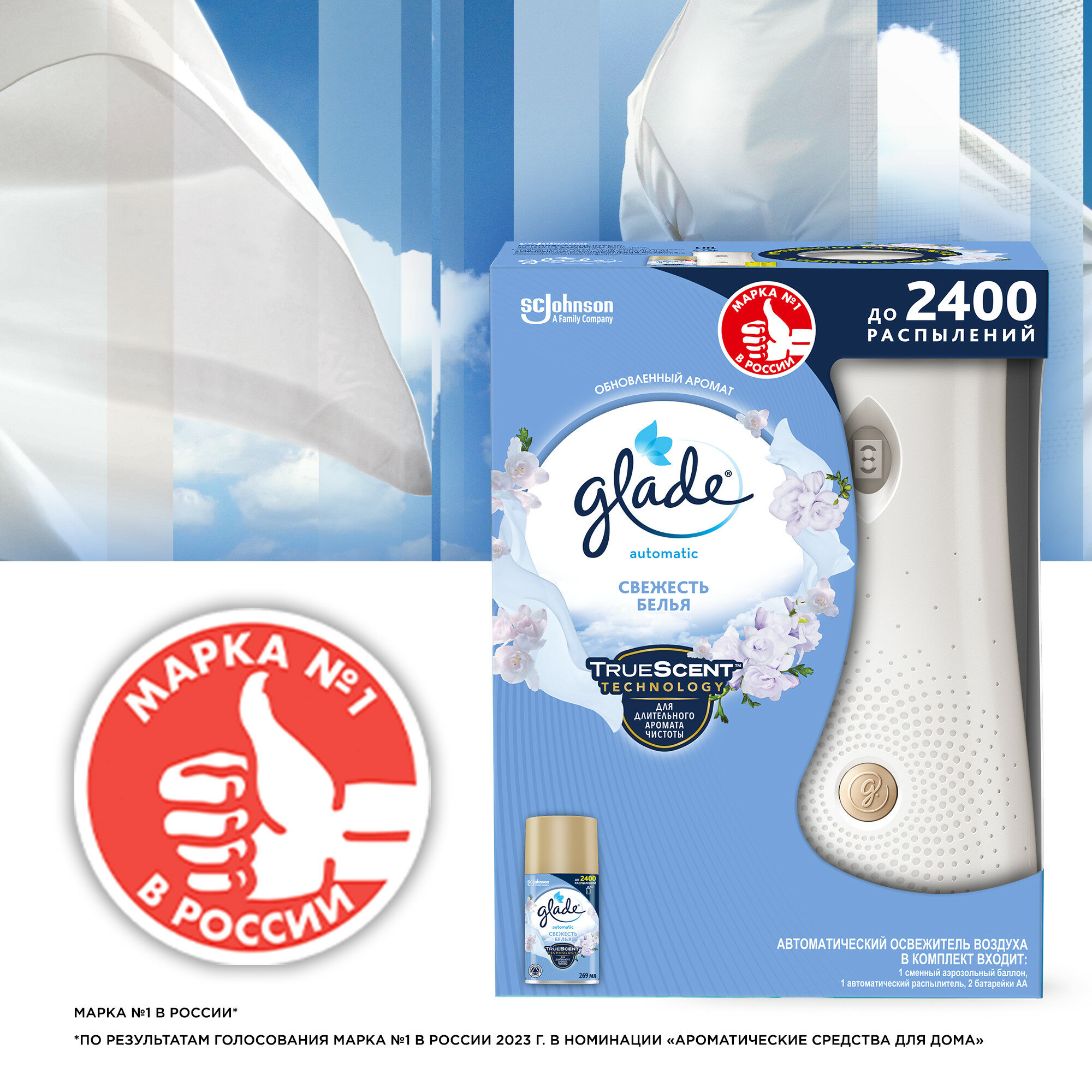 Glade освежитель воздуха Свежесть белья, автоматический, со сменным баллоном, 269 мл, , интересное: