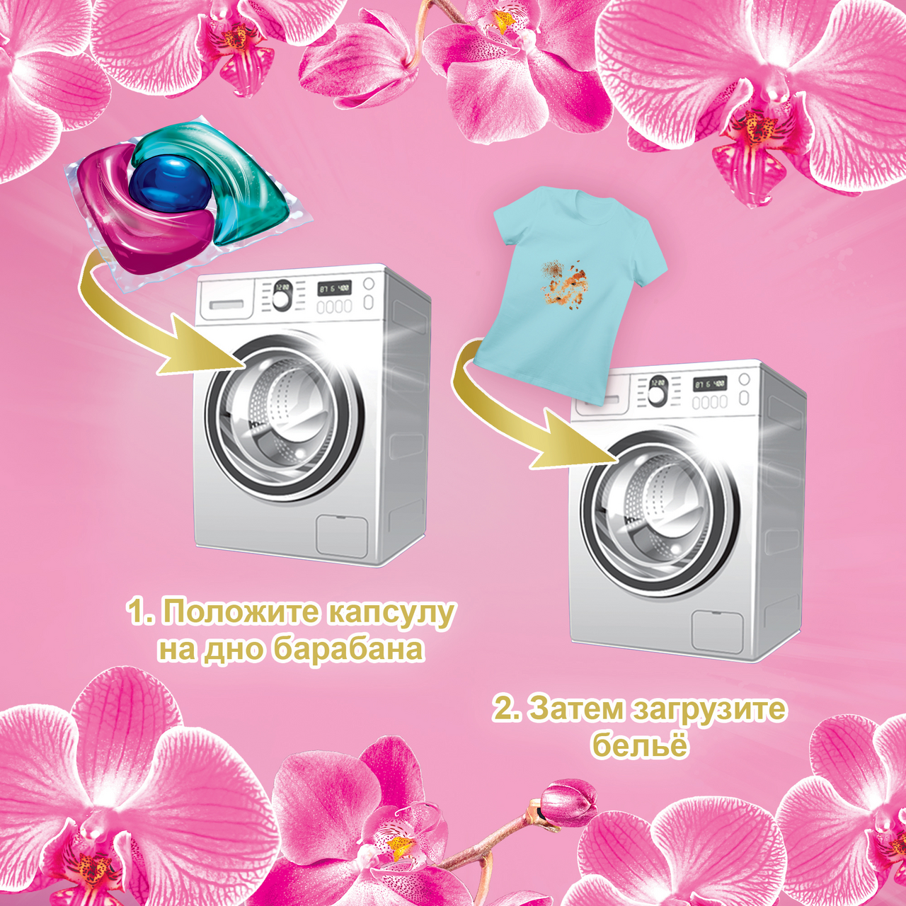 | Способ применения | положите капсулу в барабан стиральной машины. Всегда следуйте инструкциям по дозировке, указанным на упаковке. Машинная стирка (вода любой жесткости) 1 капсула: среднее загрязнение, 2 капсулы: сильное загрязнение. Не предназначено для ручной стирки! Температура: подходит для стирки при температуре от 30 ˚C. Расход: 1 капсула = 1 стирка (загрузка 4-5 кг белья) |