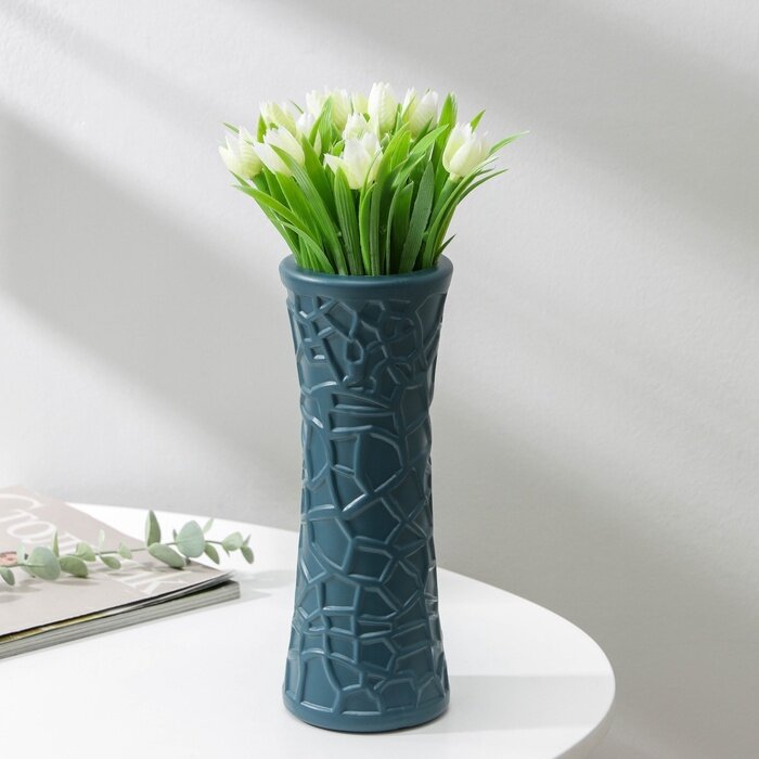 Купить Ваза для цветов, пластик, 8,2×22 см, 650 мл, синяя