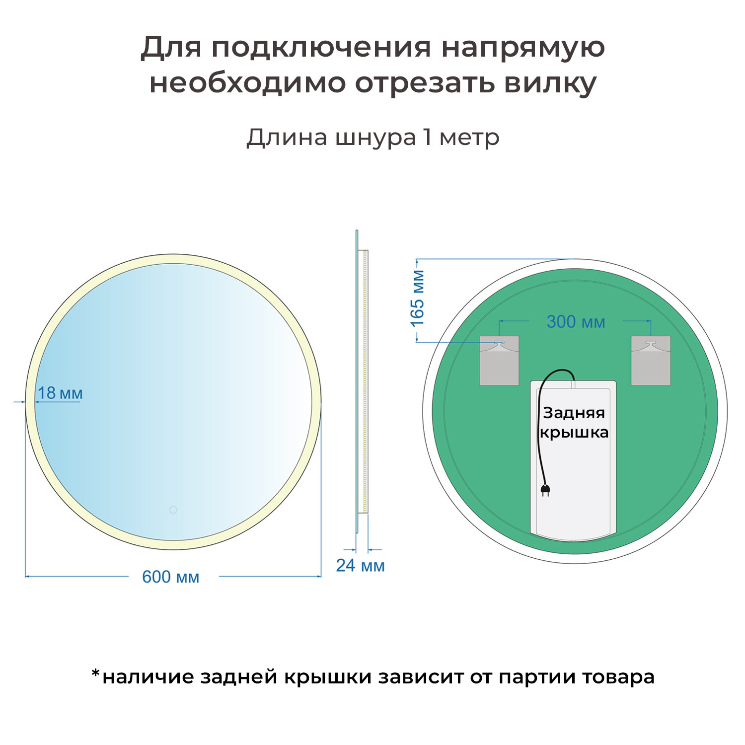 Зеркало с подсветкой в ванную круглое Pele lite 60 см (сенсорный выключатель, три вида LED подсветки)