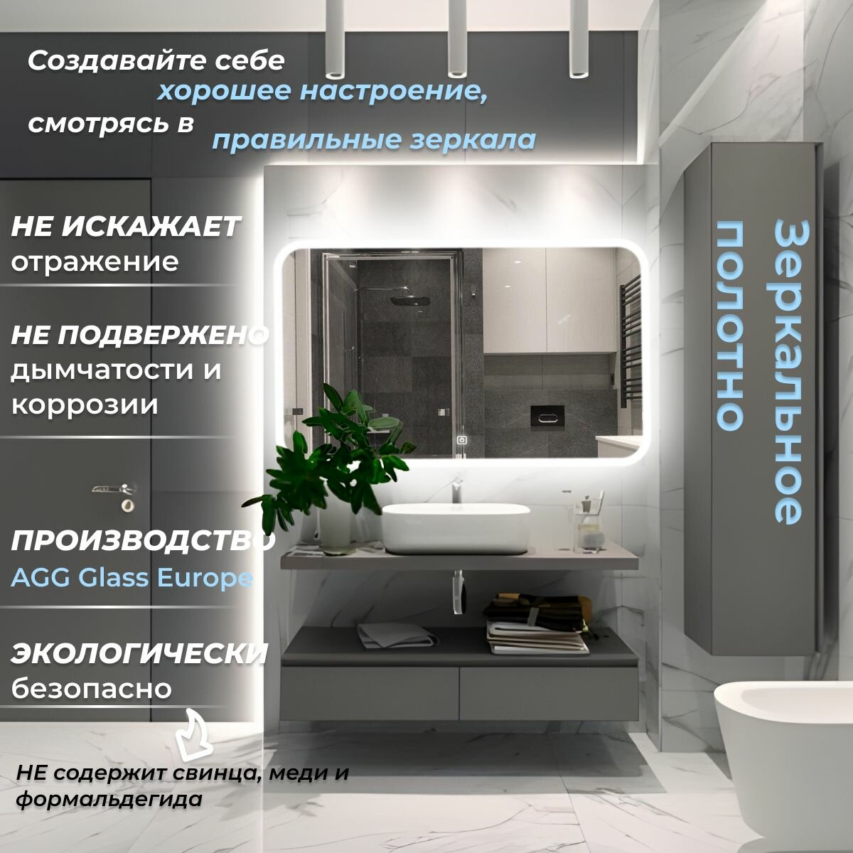 Зеркало настенное с подсветкой,фронтальной подсветкой,фоновой подсветкой и сенсорным выключателем для ванной, Иллюзия лайт 100х80
