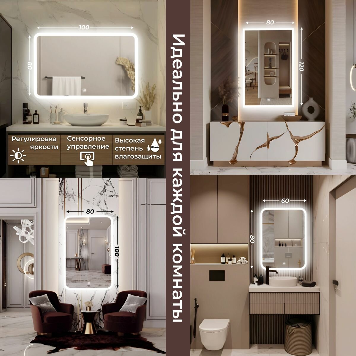 Зеркало настенное с подсветкой фоновой LED-подсветкой,фронтальной подсветкой/зеркало для ванной Илюзия лайт 100х80