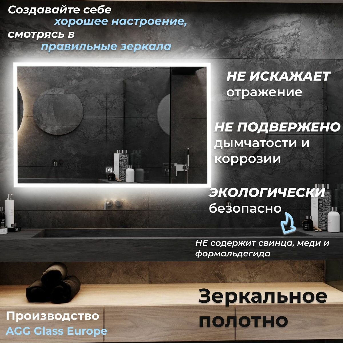 Зеркало настенное с подсветкой фоновой LED-подсветкой,фронтальной подсветкой/зеркало для ванной Илюзия лайт 100х80