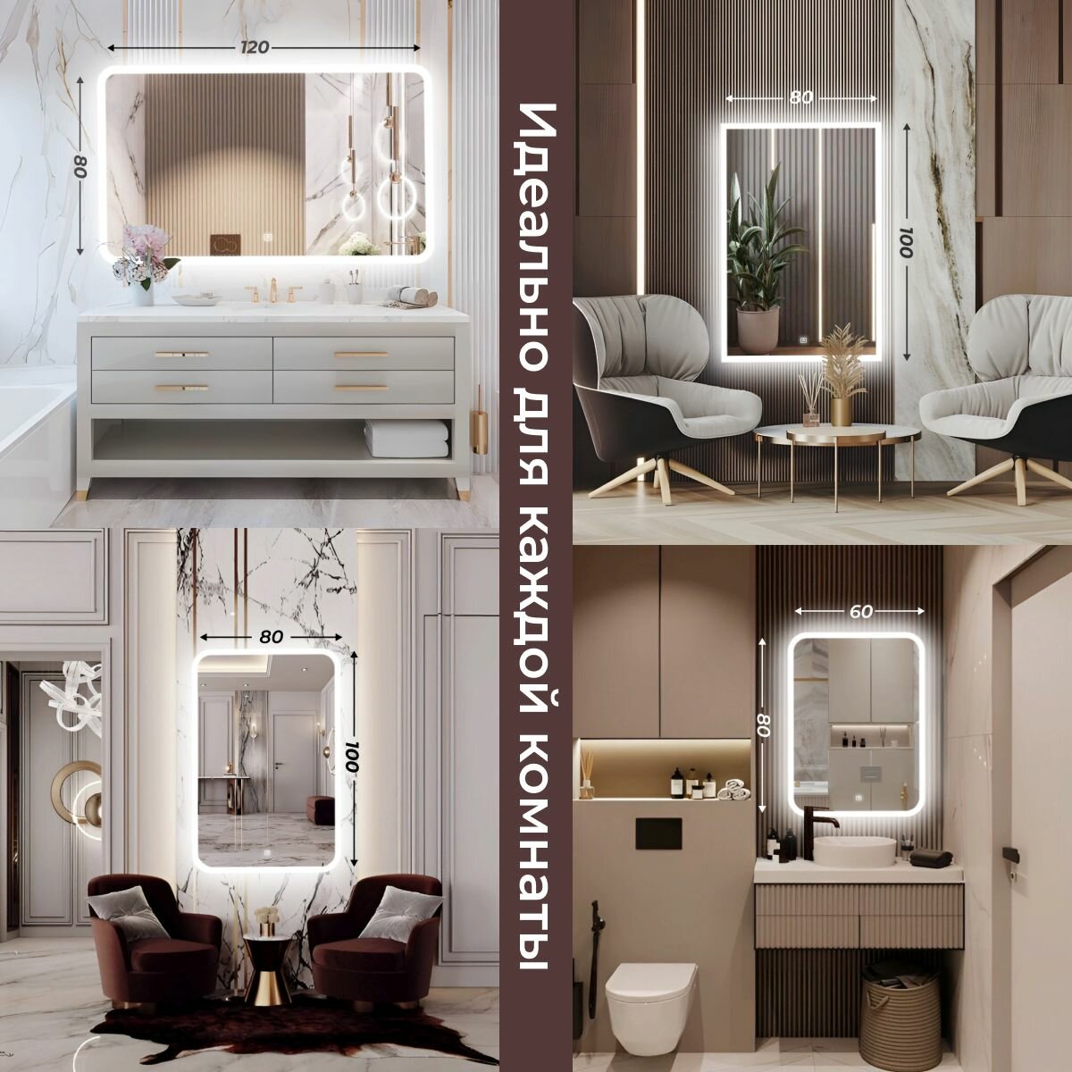 Зеркало настенное с подсветкой фоновой LED-подсветкой,фронтальной подсветкой/зеркало для ванной Илюзия лайт 80х120