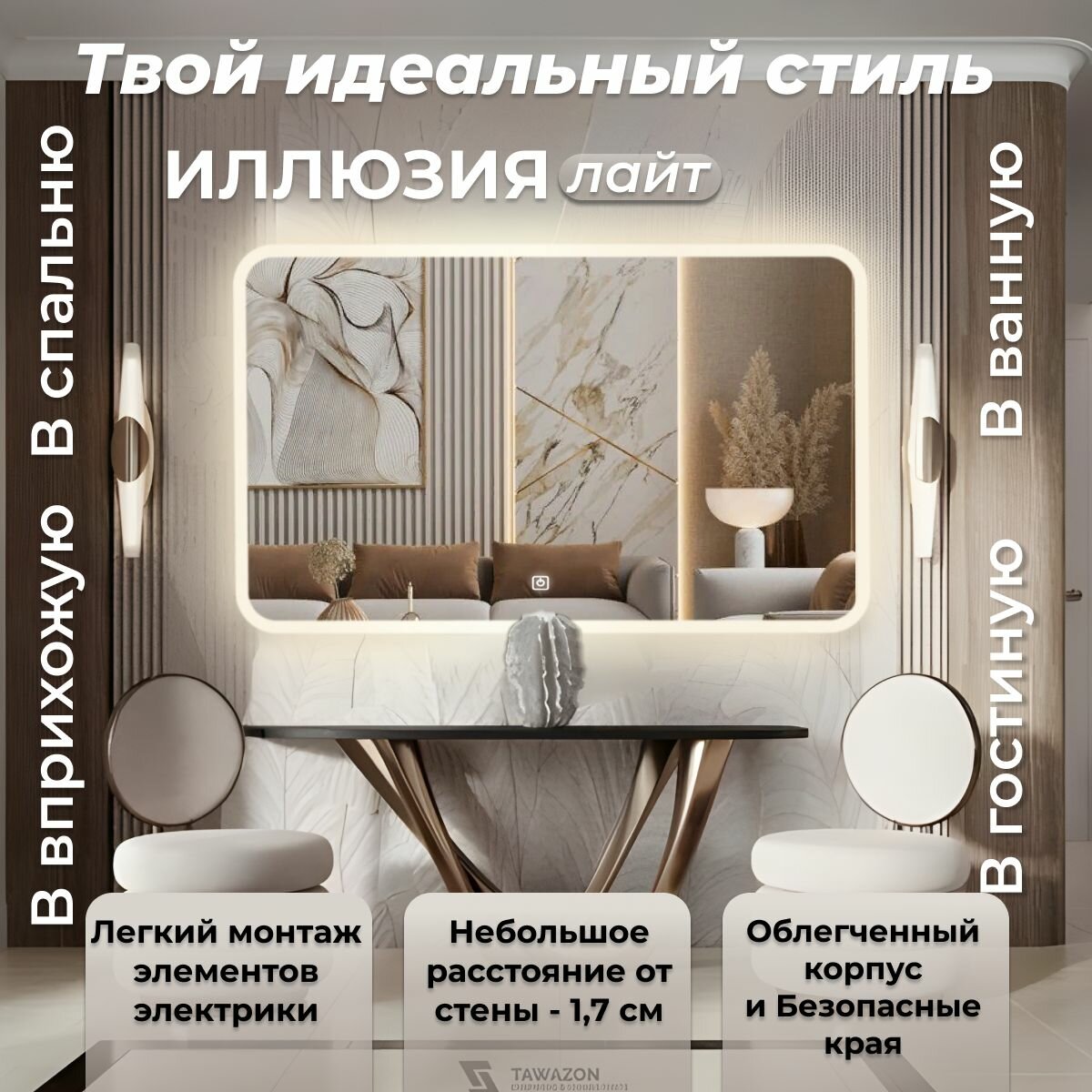 Зеркало настенное Иллюзия лайт, теплая подсветка, сенсорный выключатель, для ванной, 100х80