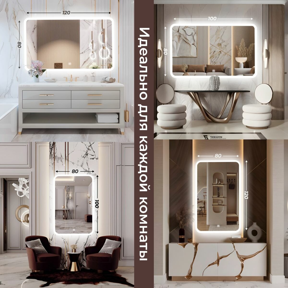 Зеркало настенное с подсветкой фоновой LED-подсветкой,фронтальной подсветкой/зеркало для ванной Илюзия лайт 100х80