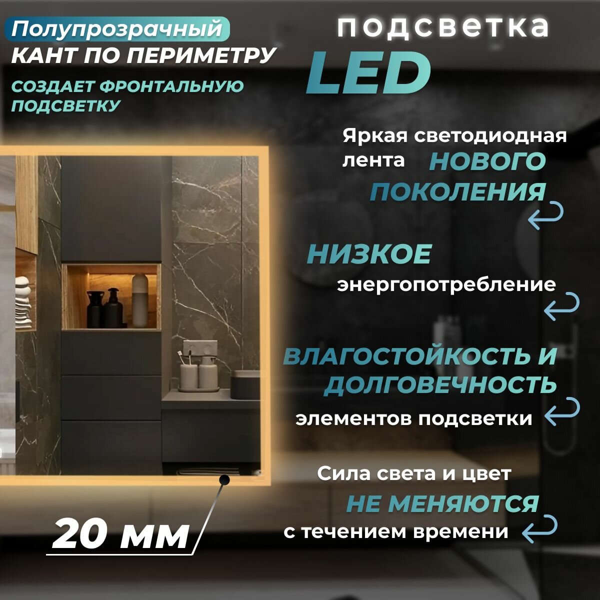 Зеркало настенное с подсветкой,фронтальной подсветкой,фоновой подсветкой и сенсорным выключателем для ванной, Иллюзия лайт 60х80