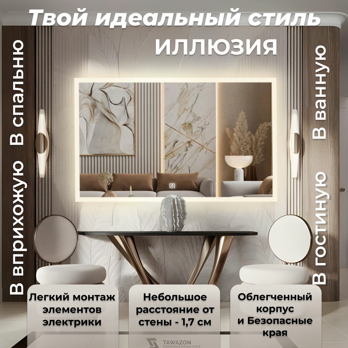 Зеркало настенное с подсветкой фоновой LED-подсветкой,фронтальной подсветкой/зеркало для ванной Илюзия лайт 100х80