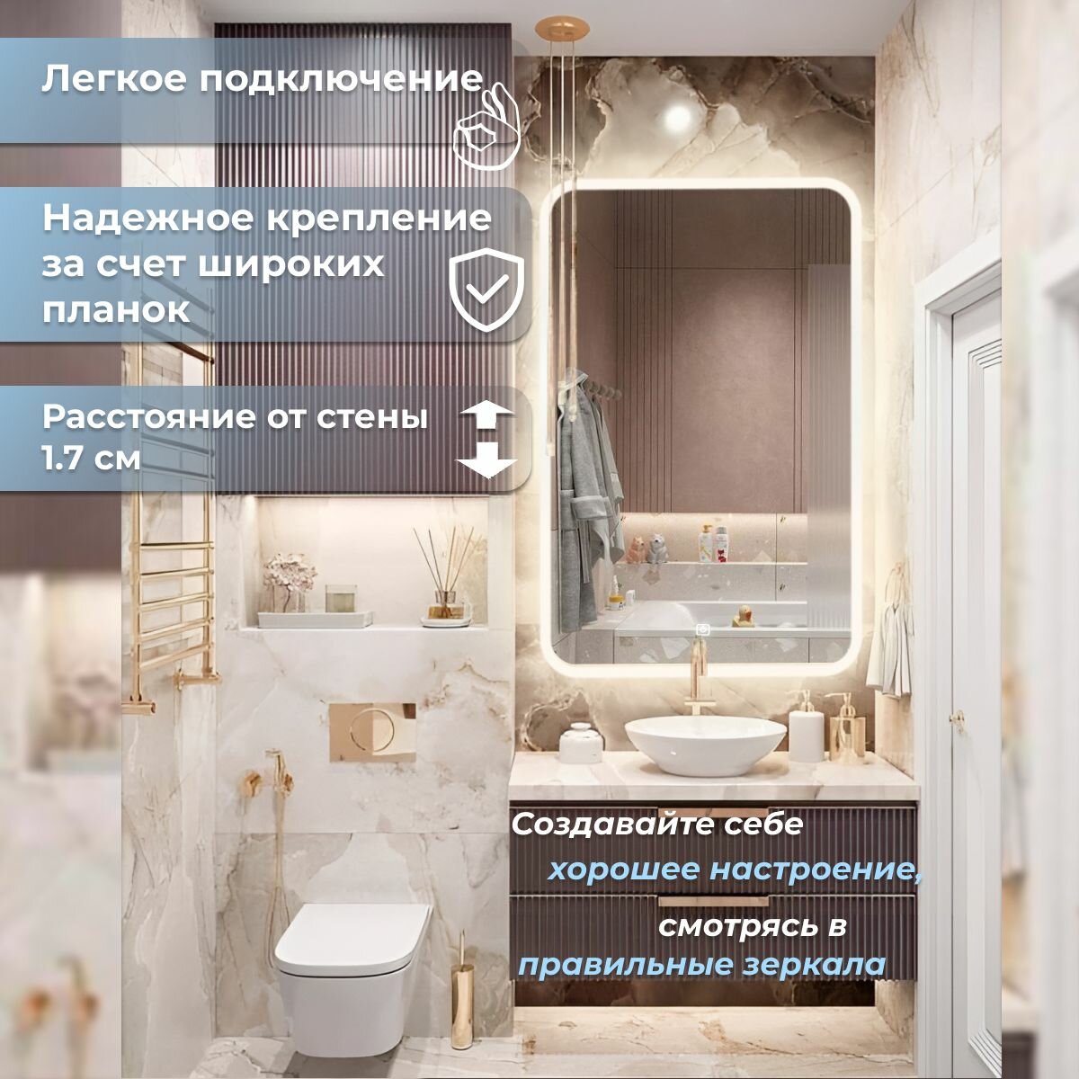 СохранитьЗеркало настенное Иллюзия лайт, нейтральная подсветка, сенсорный выключатель, для ванной, 80х100 интересное: