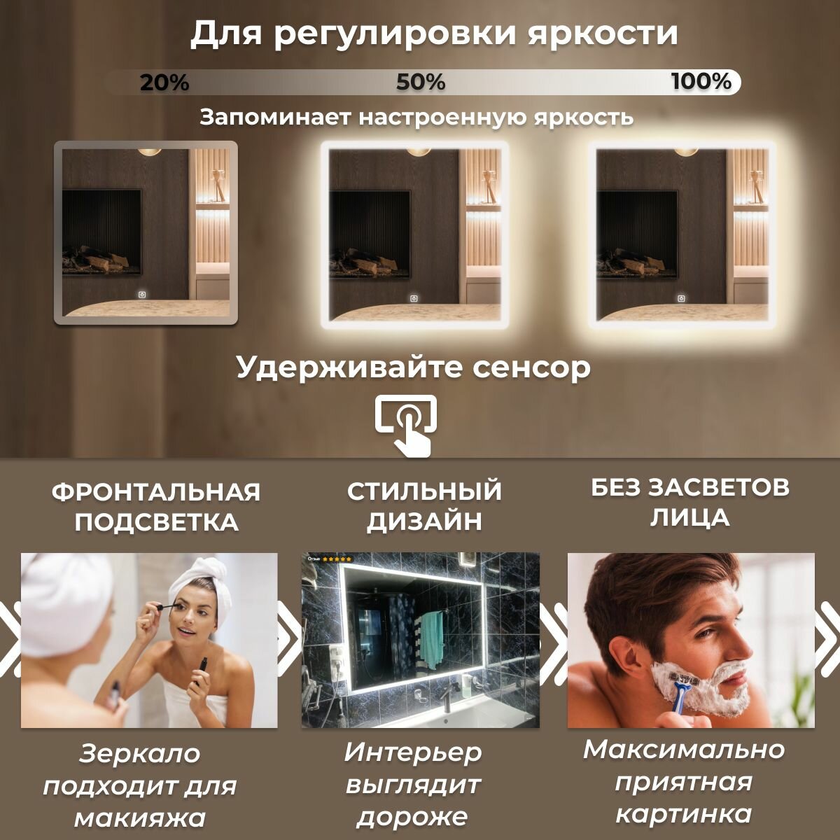 Зеркало настенное с подсветкой,фронтальной подсветкой,фоновой подсветкой и сенсорным выключателем для ванной, Иллюзия лайт 50х80