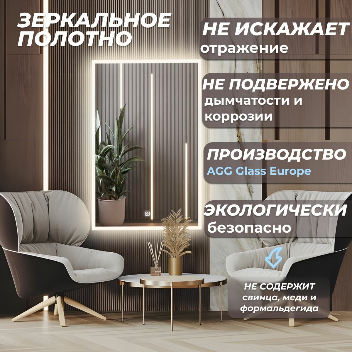 Зеркало настенное Иллюзия лайт с фоновой LED-подсветкой, фронтальной подсветкой и сенсорным выключателем для ванной 50х80