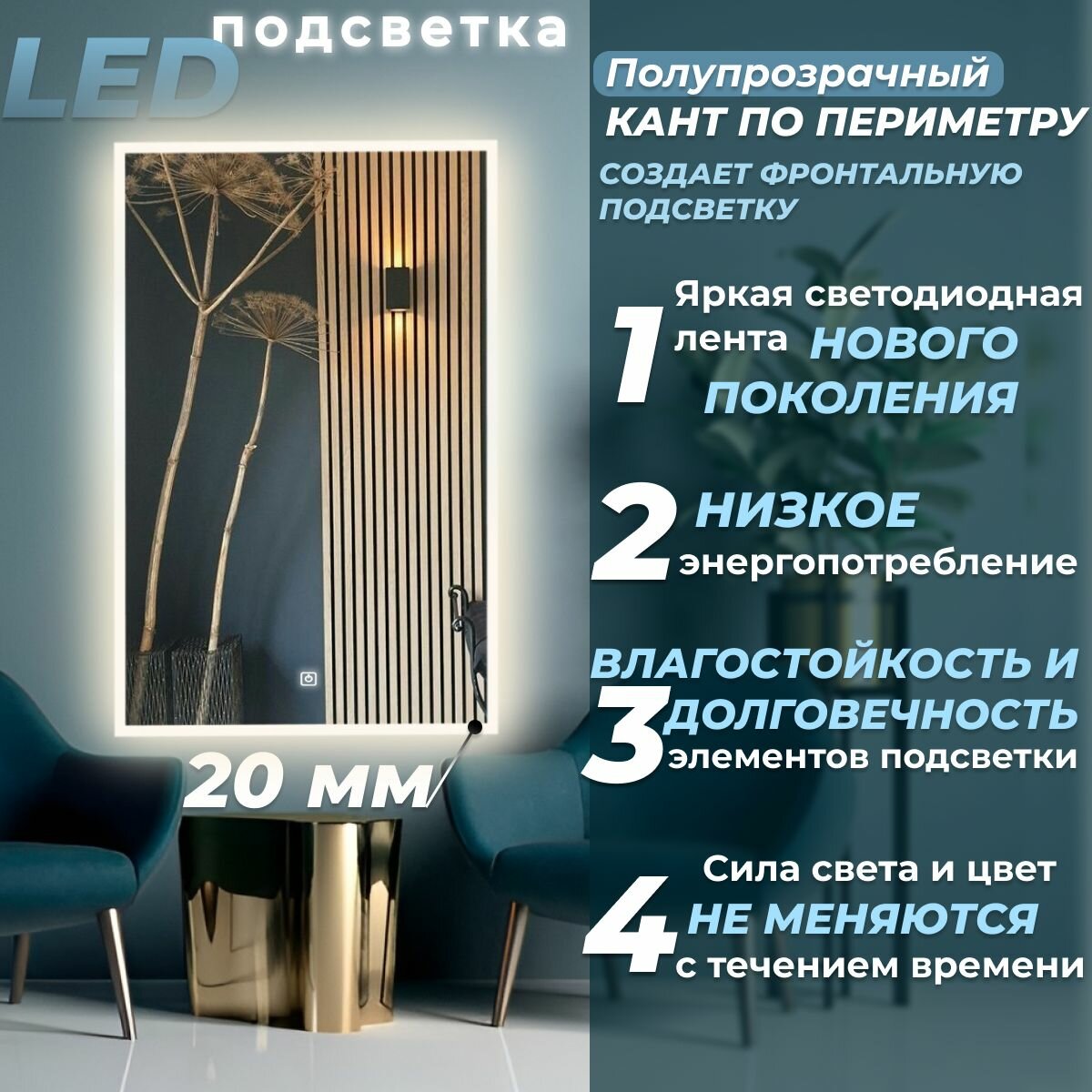 Зеркало настенное с подсветкой фоновой LED-подсветкой,фронтальной подсветкой/зеркало для ванной Илюзия лайт 80х120