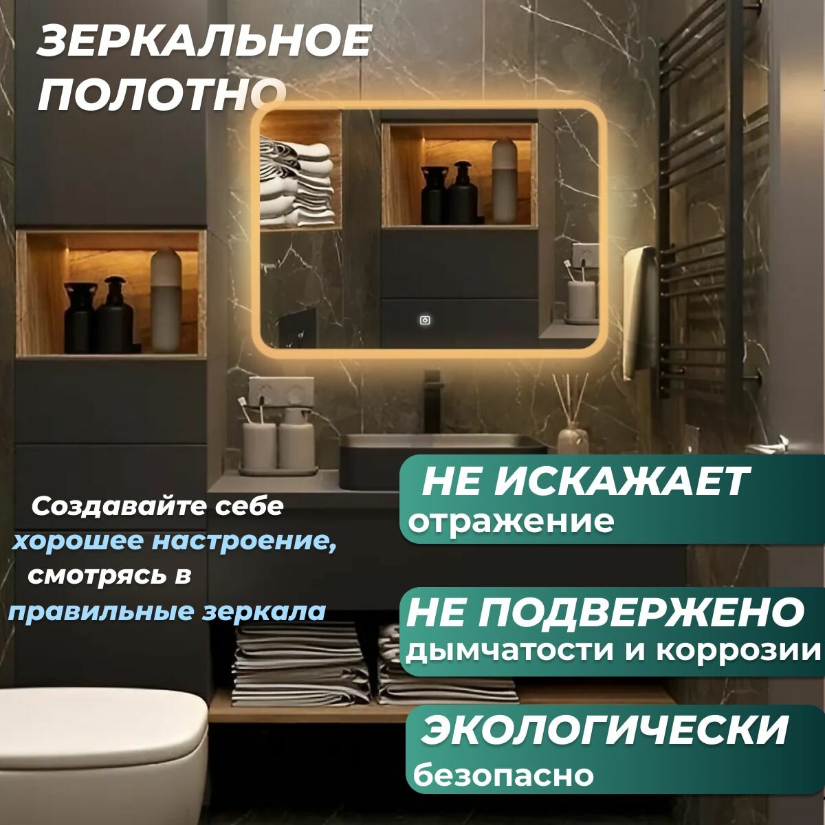 СохранитьЗеркало настенное Иллюзия лайт, теплая подсветка, сенсорный выключатель, для ванной, 80х60 интересное: